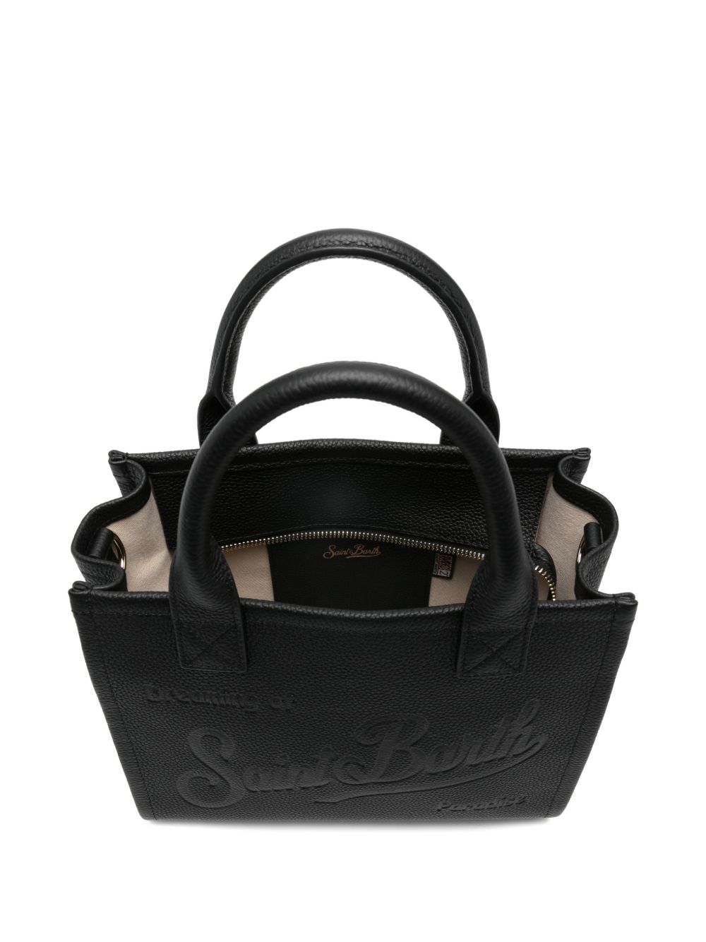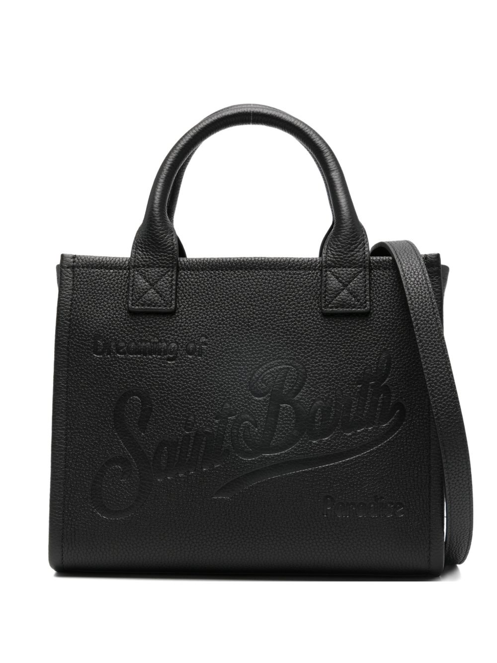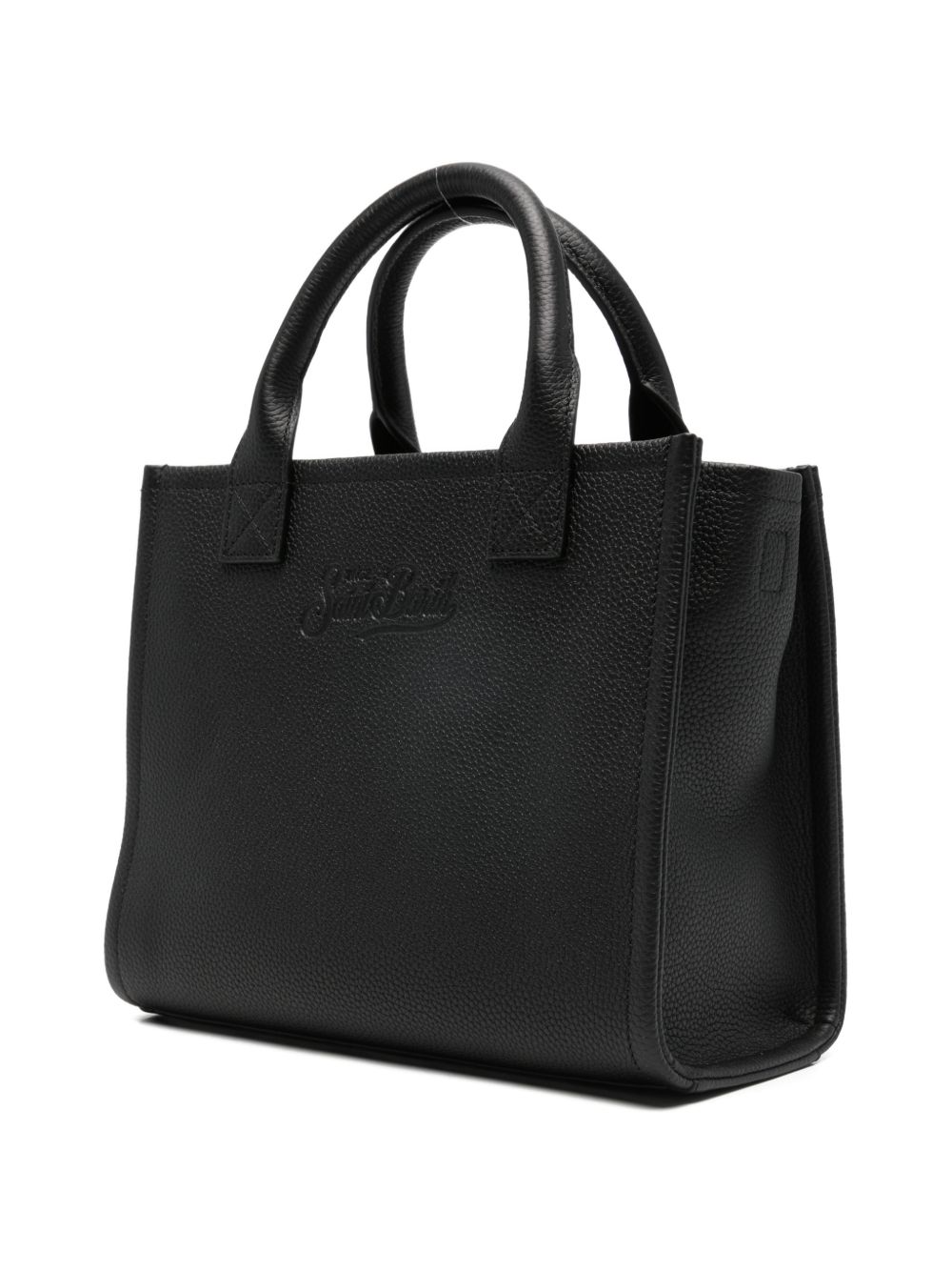 Borsa a spalla. Pelle martellata tinta unita nera. Manici in pelle. Tracolla removibile e regolabile in pelle. Due tasche interne. Una con zip. Logo impresso a caldo
