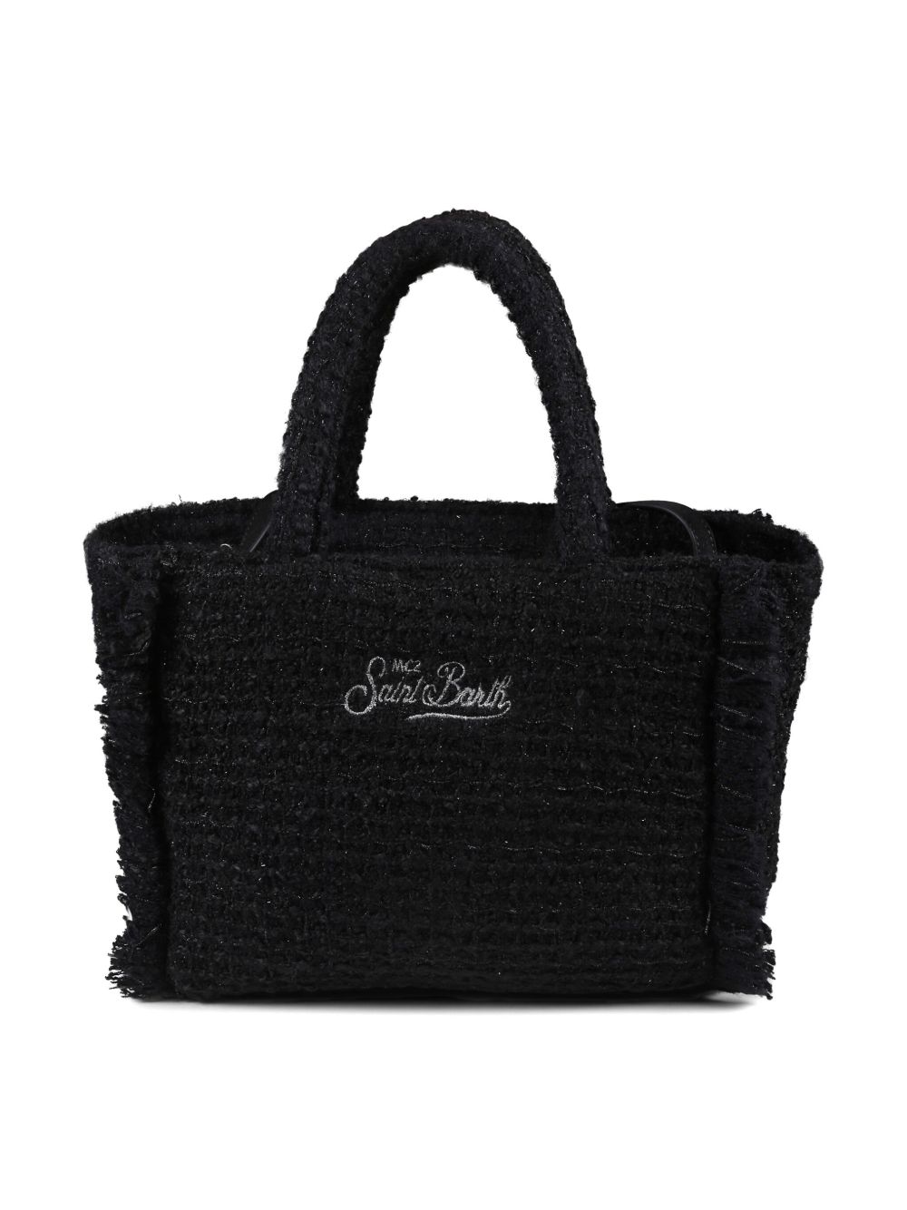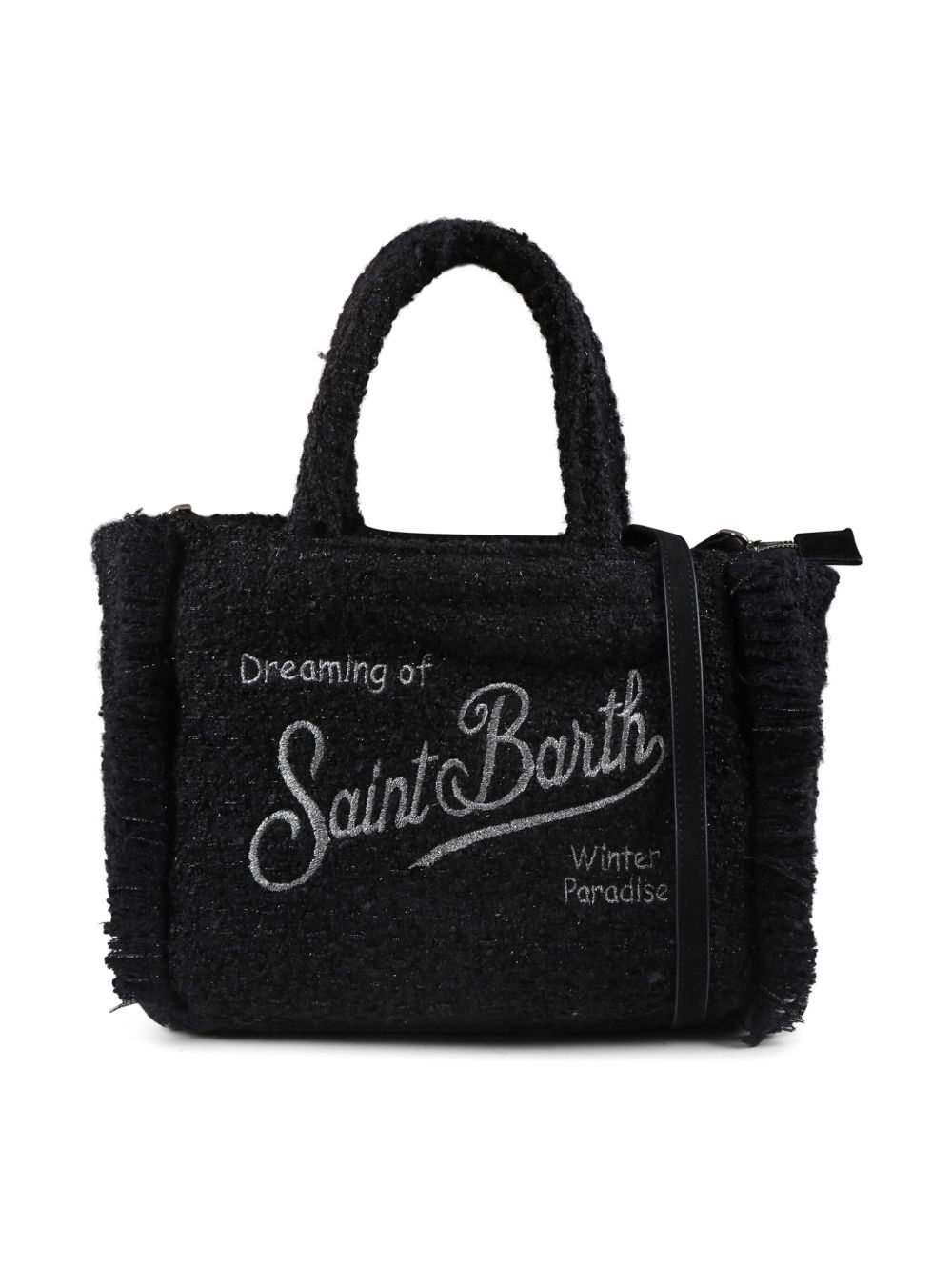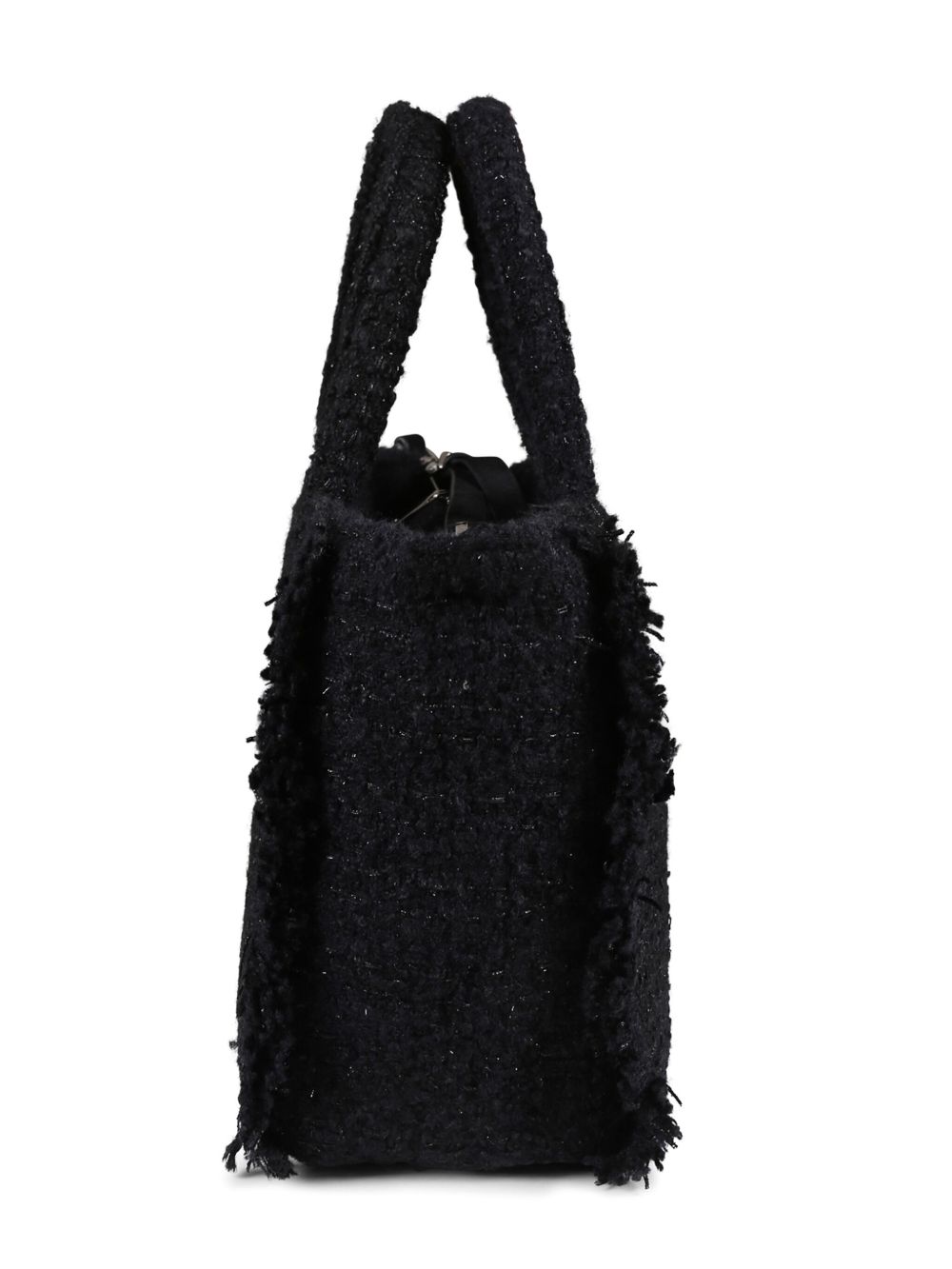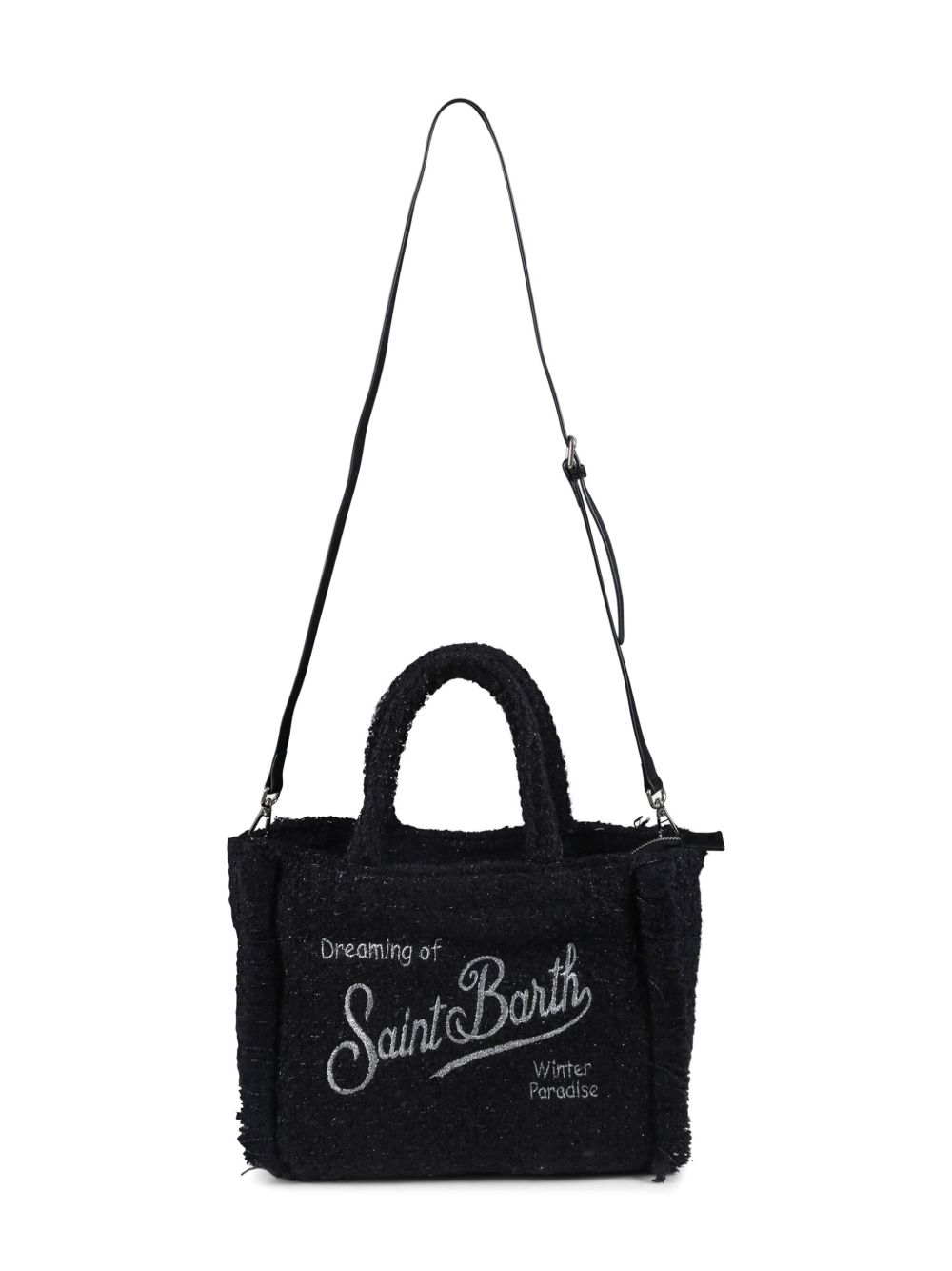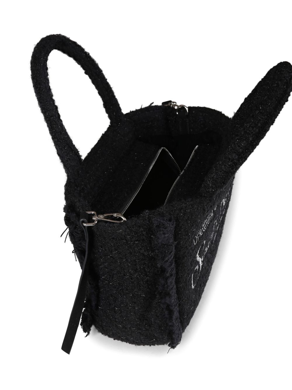 Borsa colette tweed nera, ricamo a contrasto, due manici supriori, chiusura con zip, tracolla staccabile