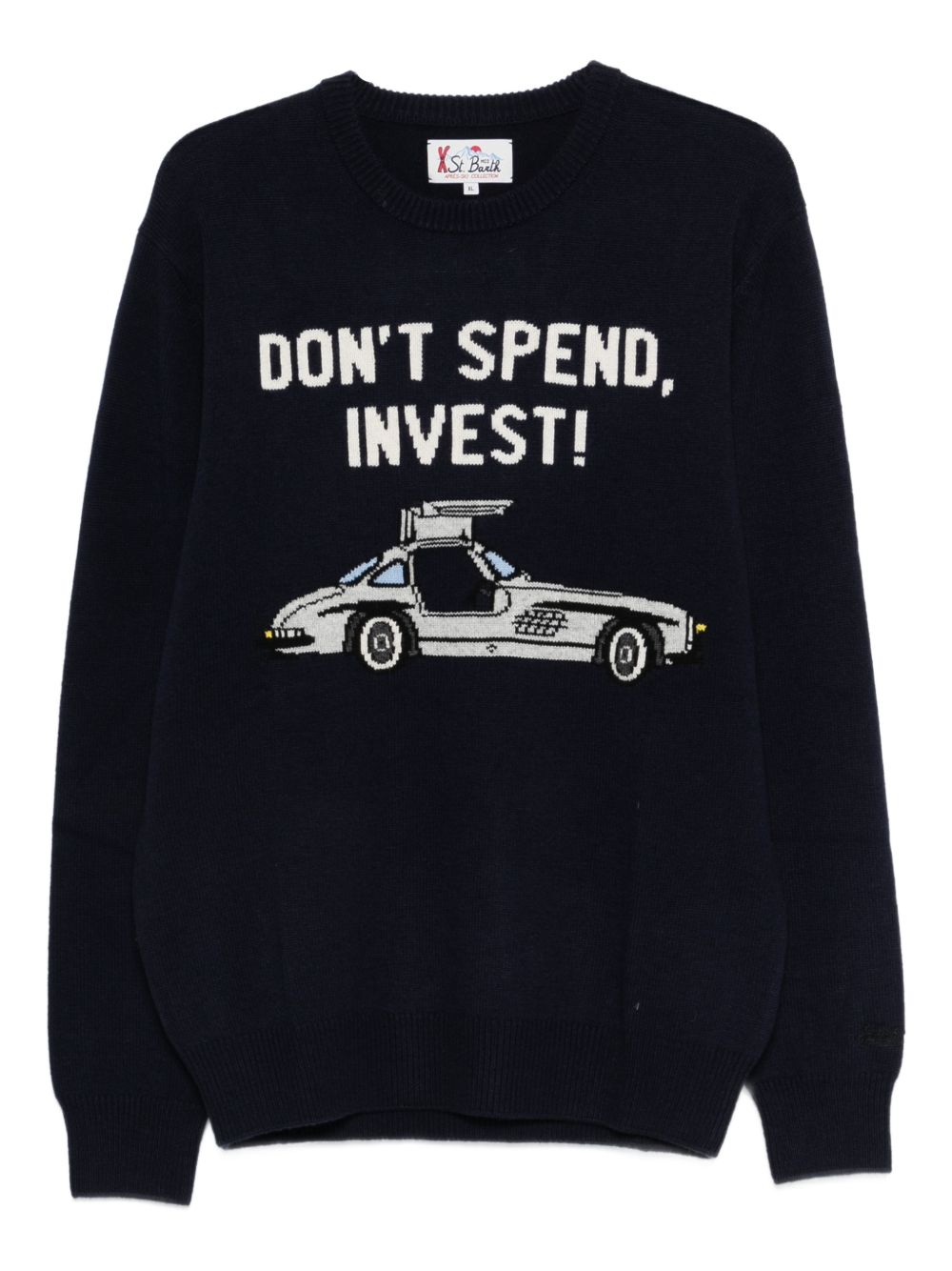 Maglio girocollo lana con ricamo sul petto "Don't spend, invest"