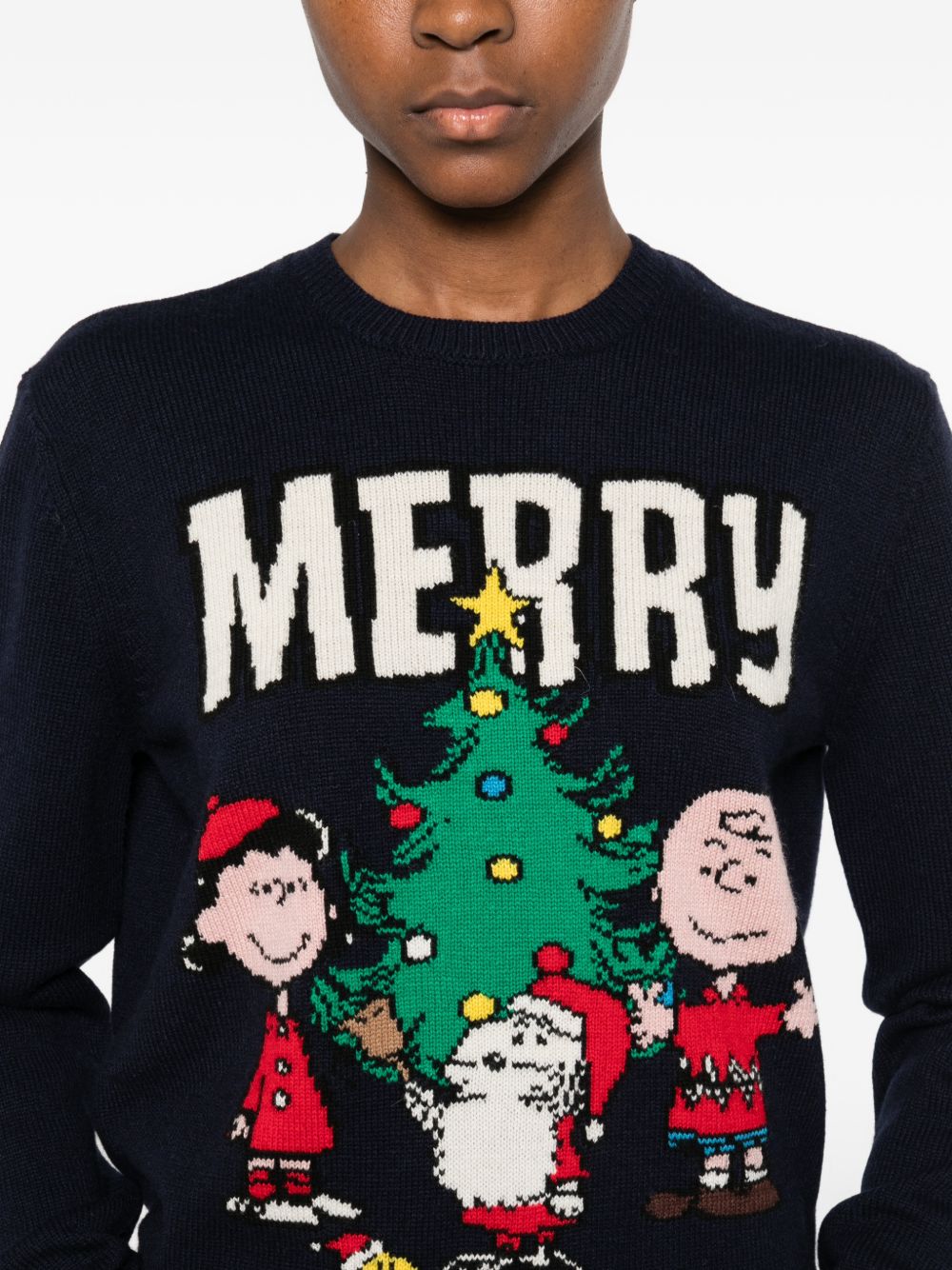 Maglione girocollo lana con ricamo sul petto "Penauts Christmas"