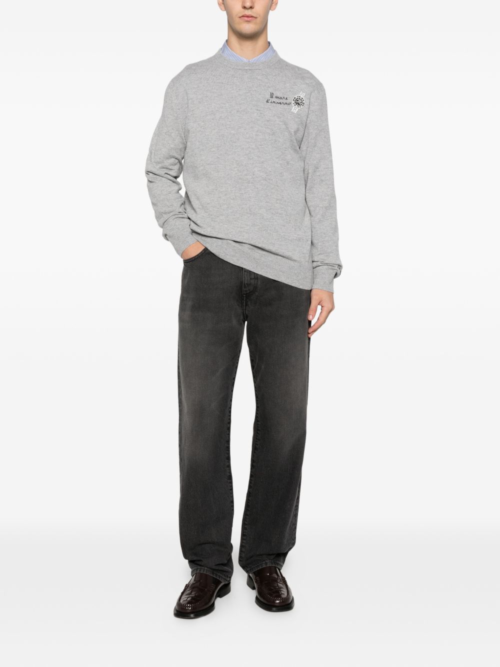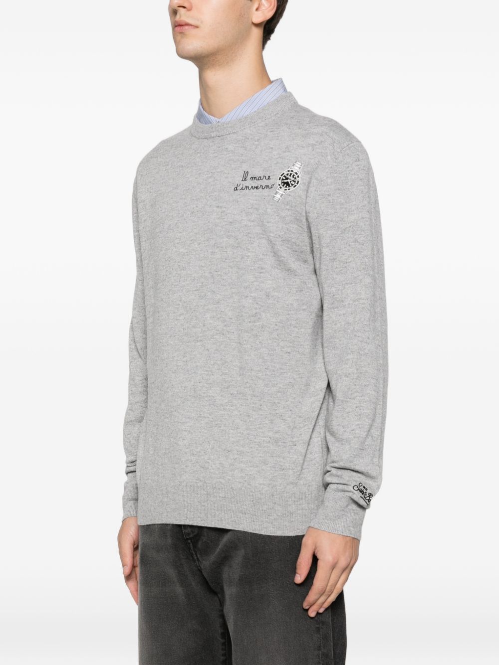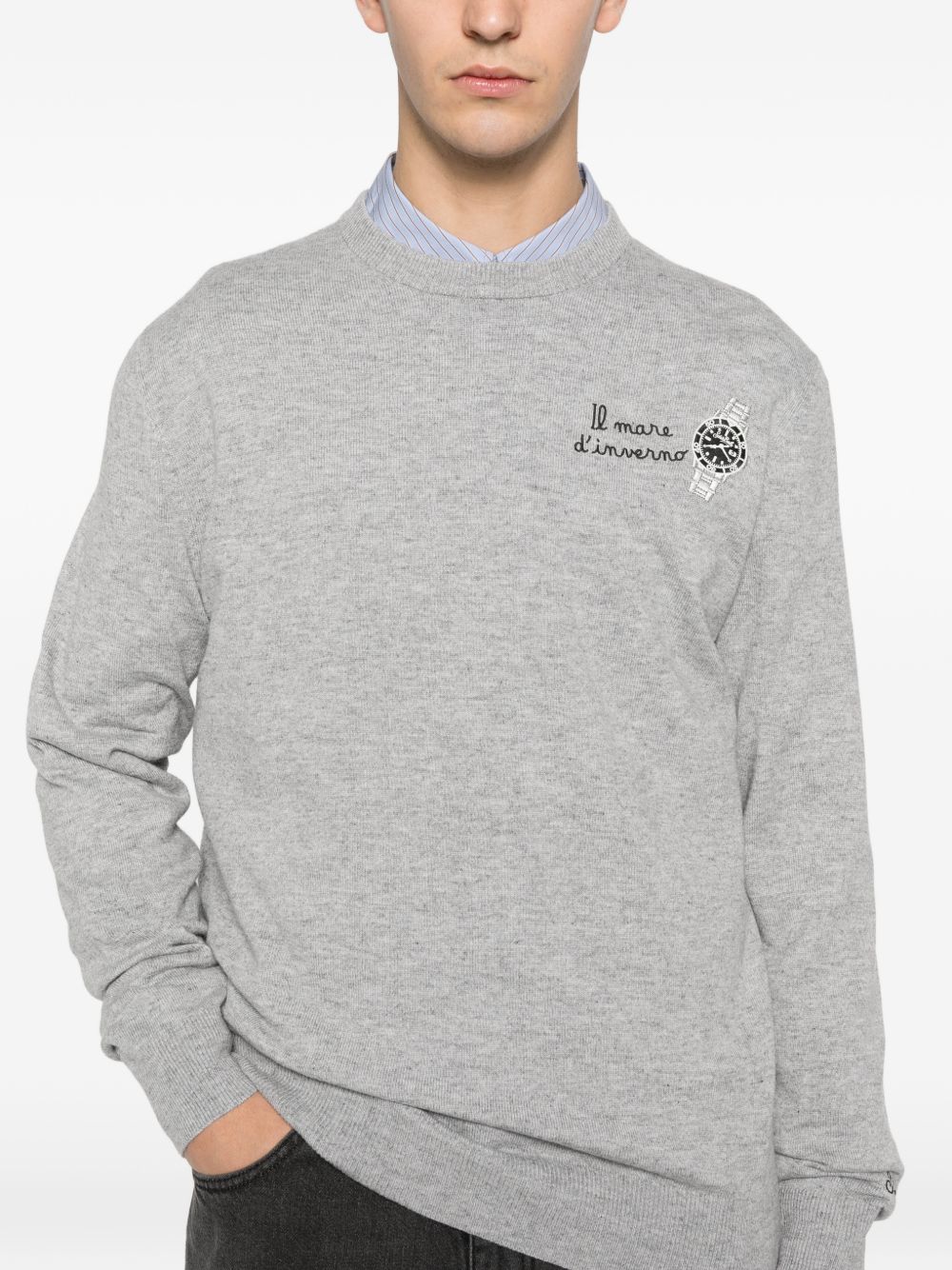Maglio girocollo lana con ricamo sul petto "Il mare d'inverno"