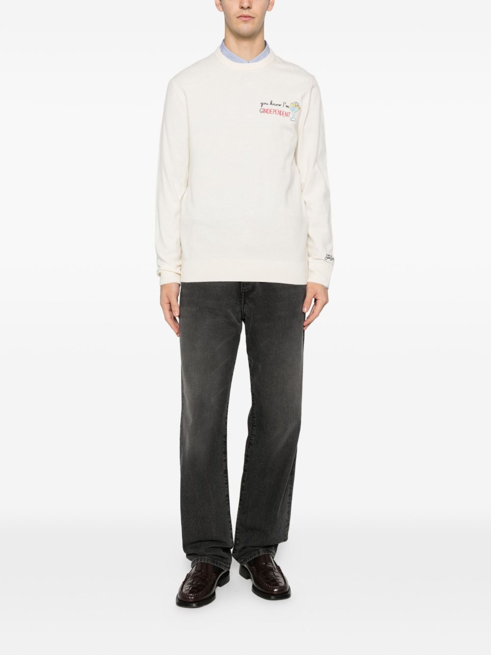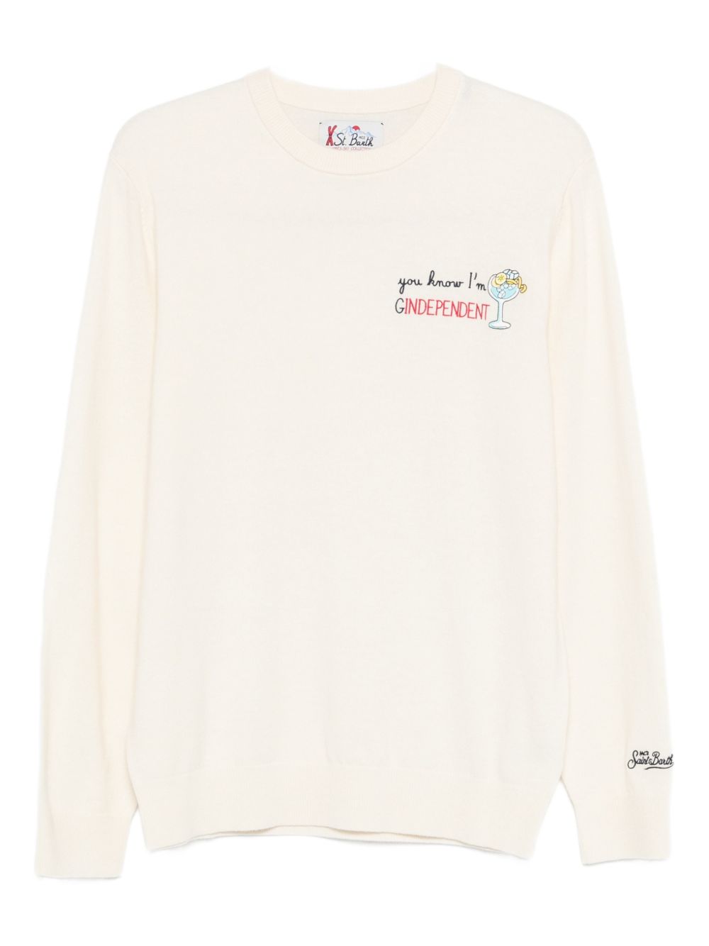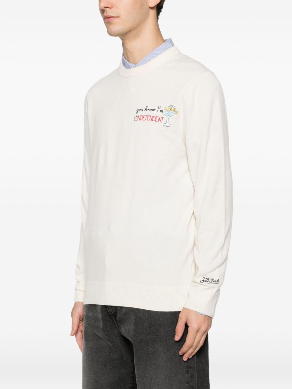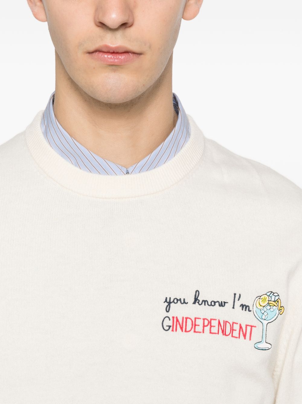 Maglio girocollo lana panna con ricamo sul petto "Gindependent"