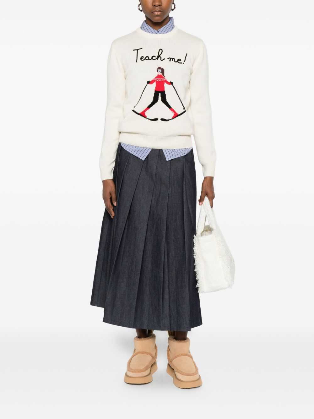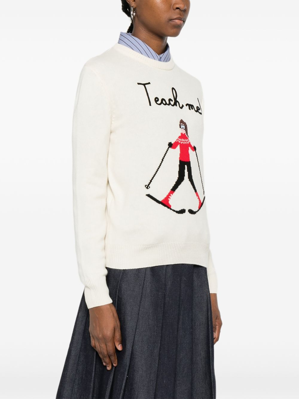 Maglione girocollo lana con ricamo sul petto "Teach me"