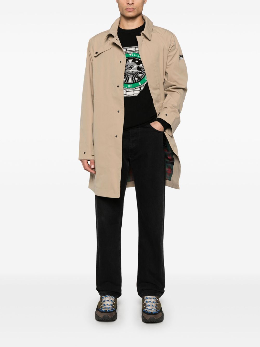 Ricamo grafica fronte, girocollo, maniche lunghe, polsini e orlo a coste