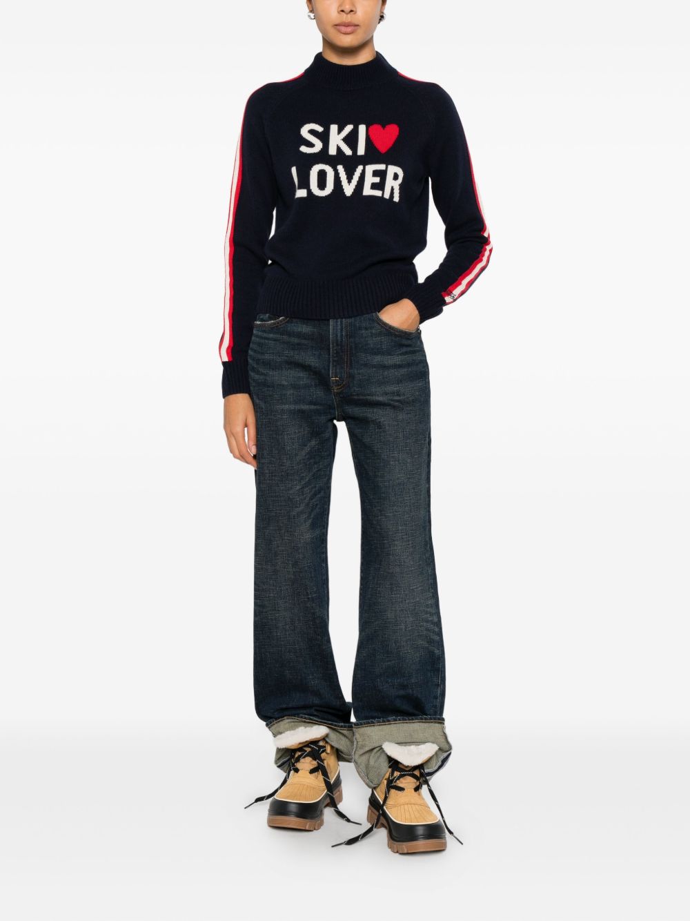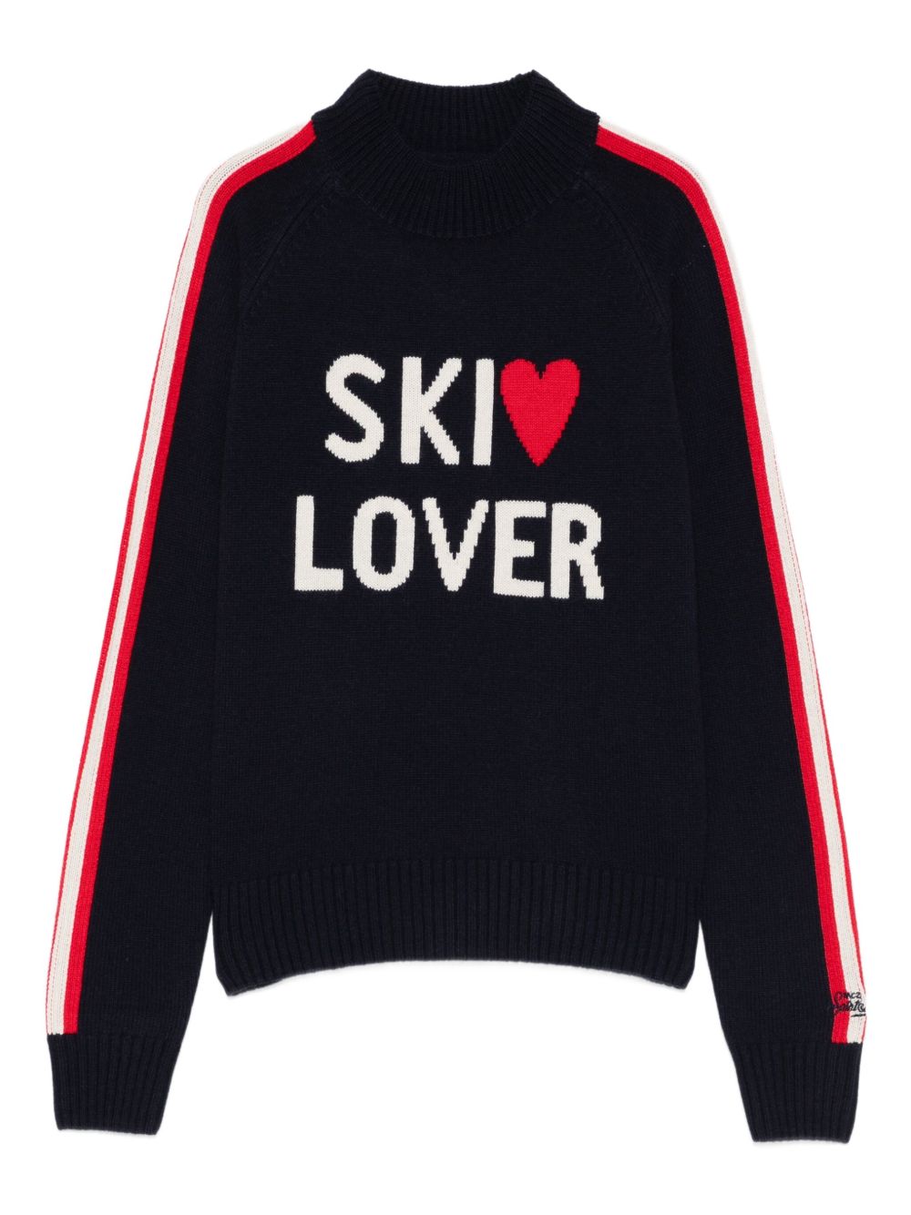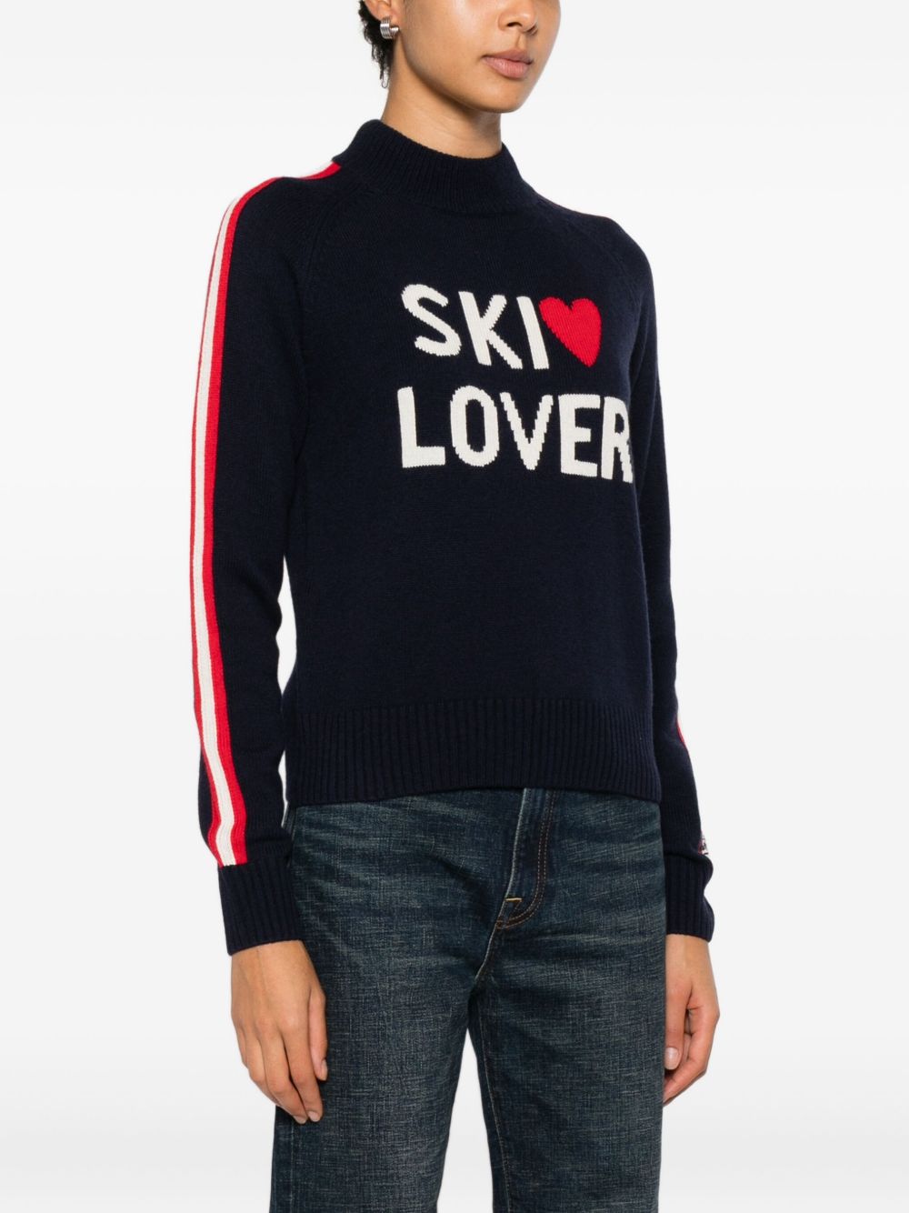 Maglione mezzocollo lana blu con intarsio "Ski Lover"