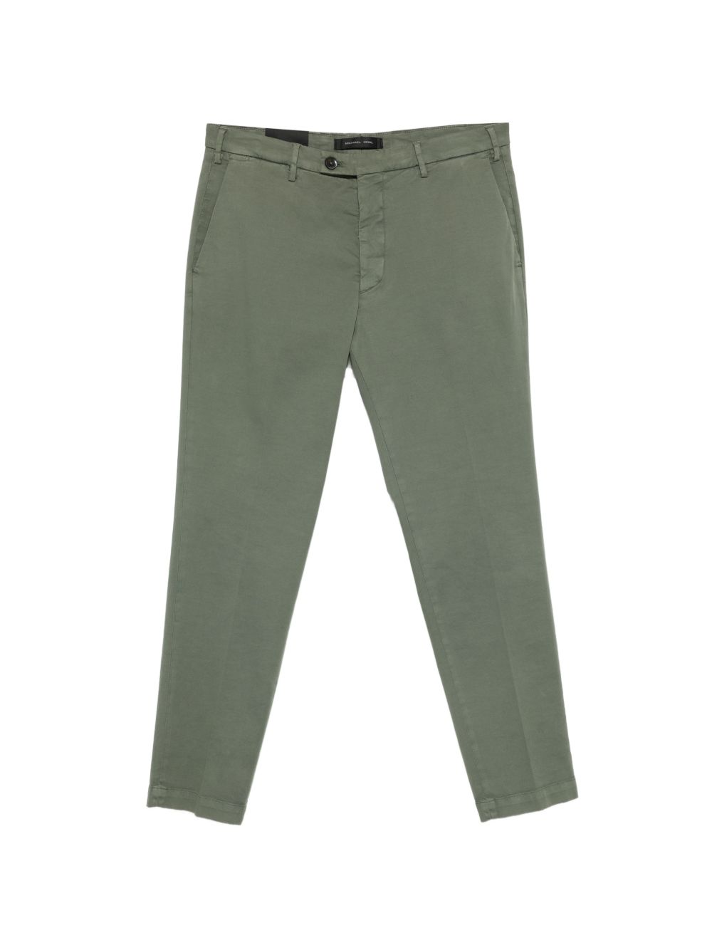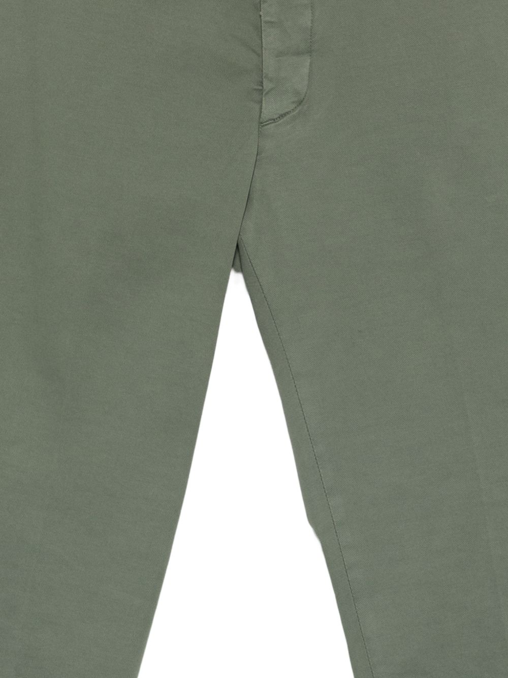 Pantalone in cotone gabardine verde, vestibilità slim, modello capri