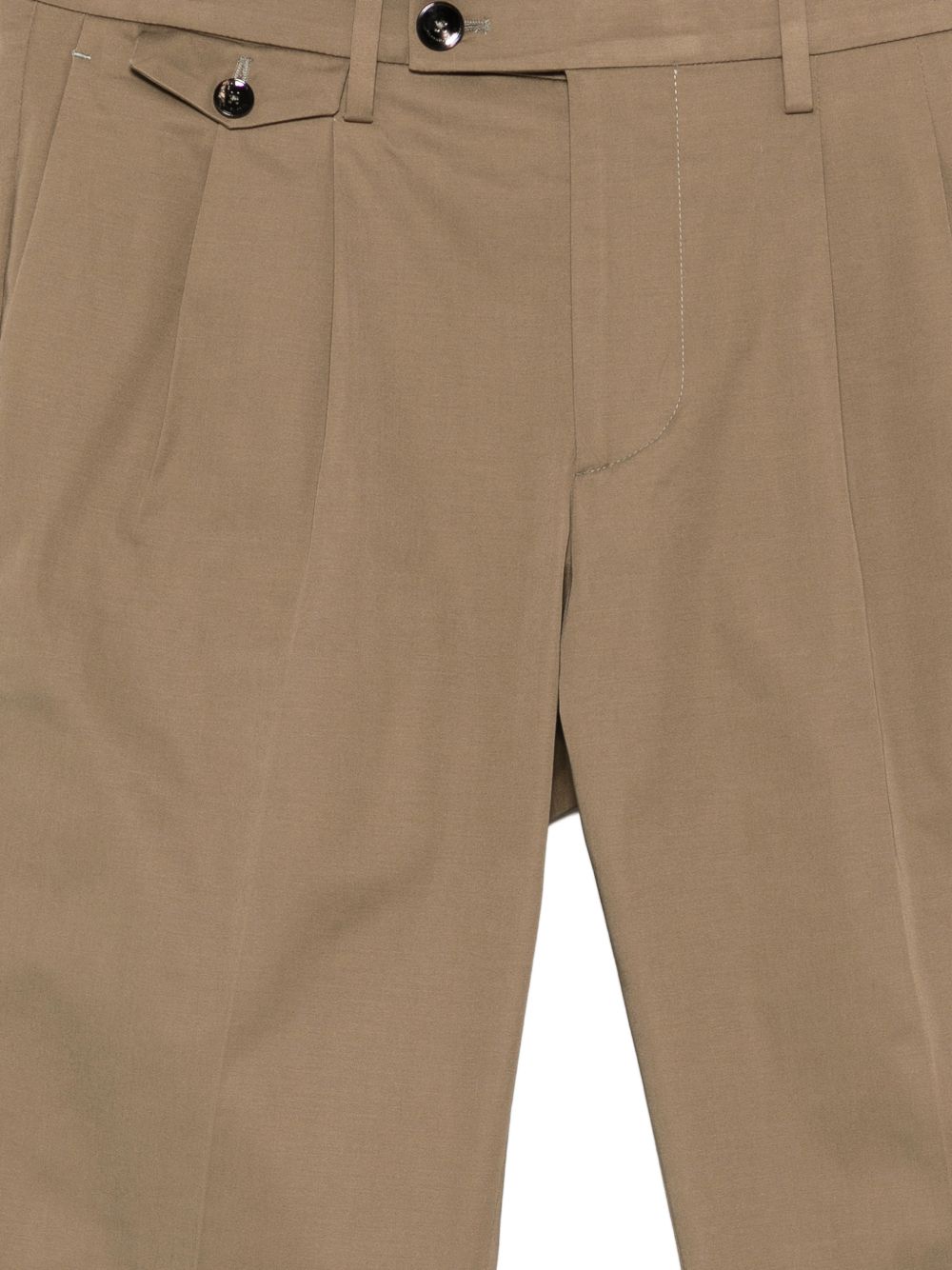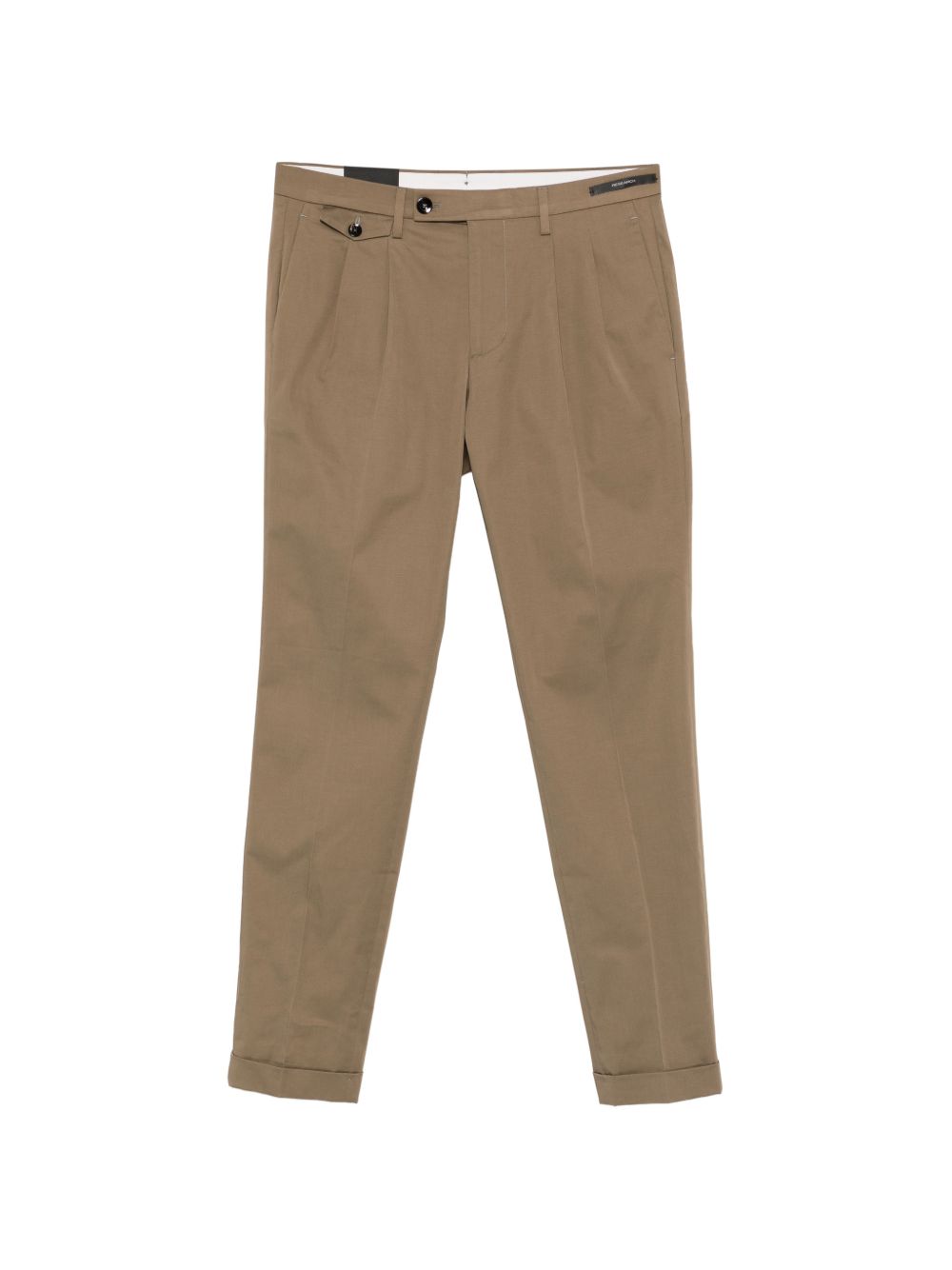 Pantalone in raso cotone color visone stretch, vestibilità comfort, risvolto sul fondo