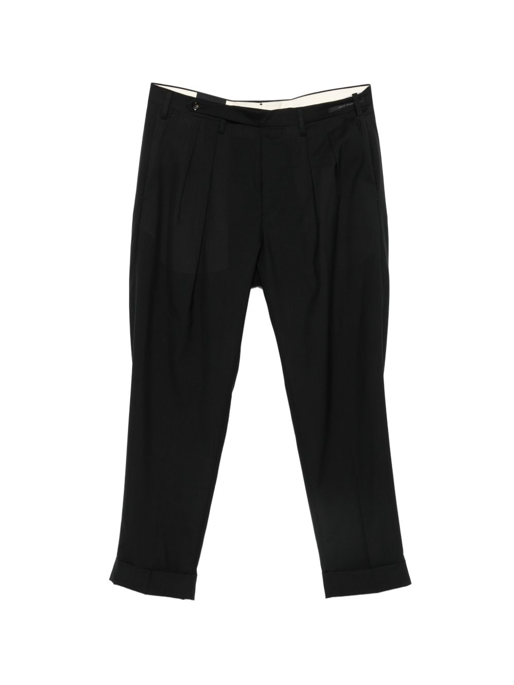 Pantalone nero in tela lana, regular fit, risvolto sul fondo
