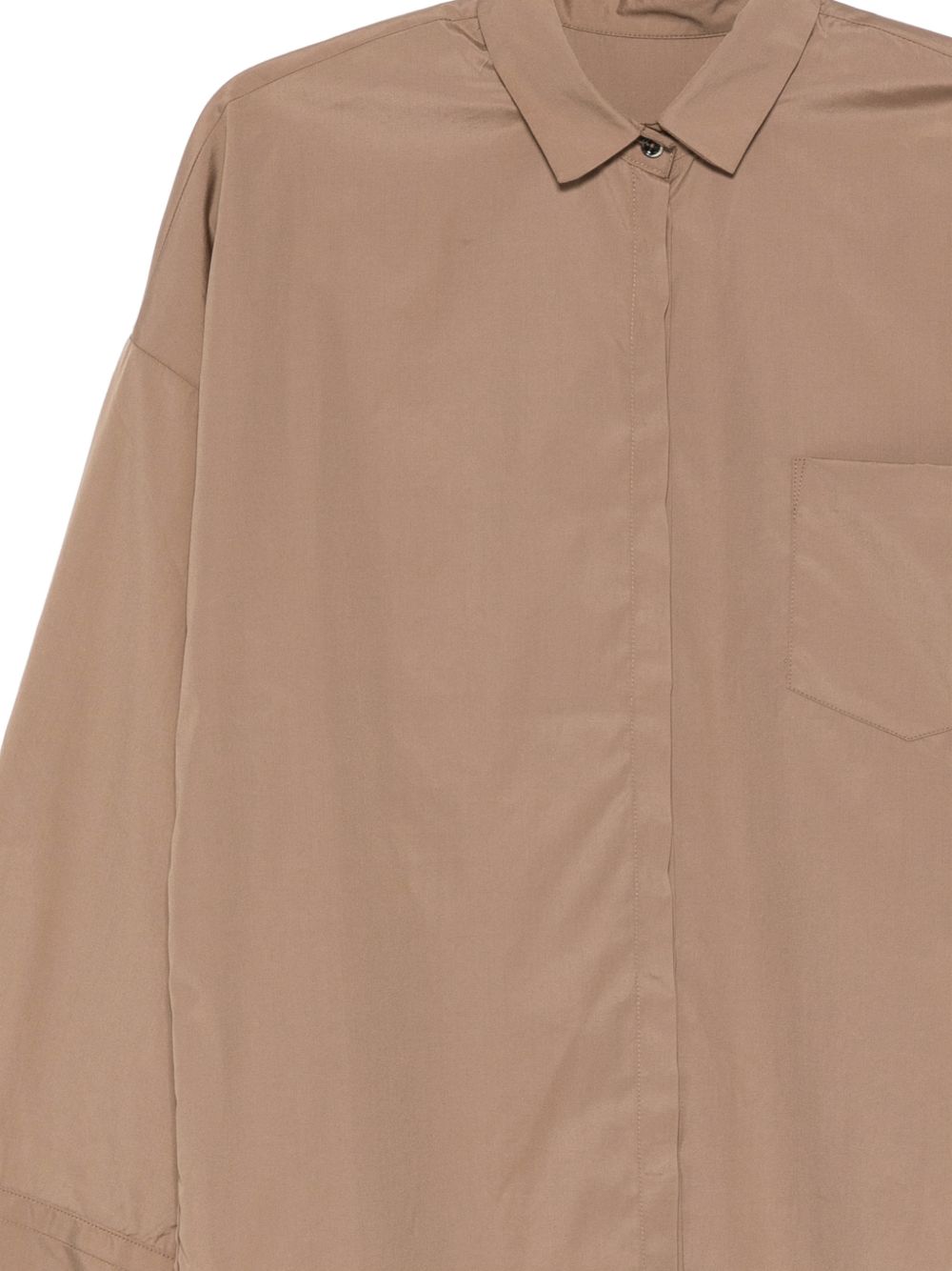 Camicia in popeline cotone tabacco, colletto piccolo, taschino sul petto, manica larga