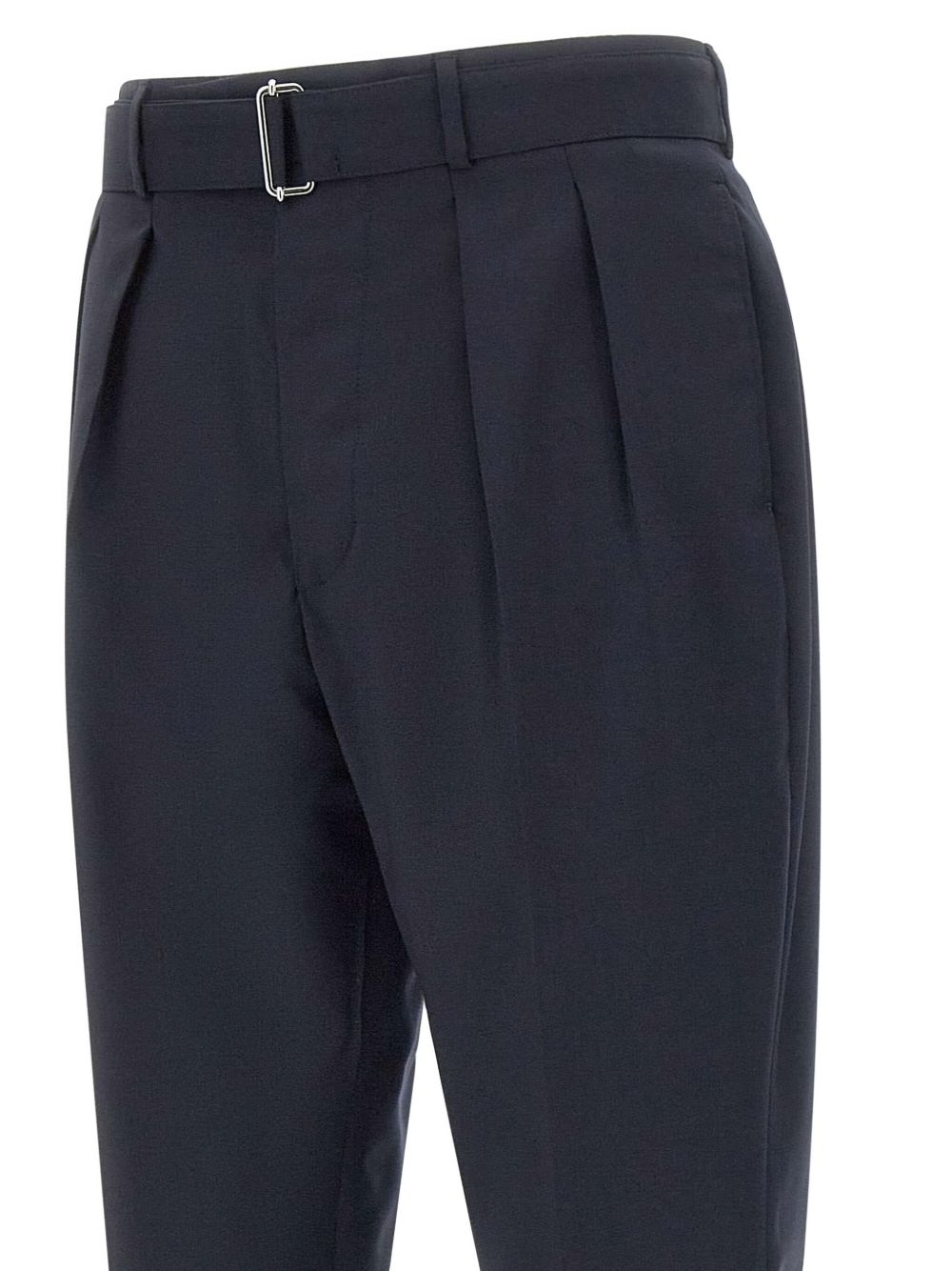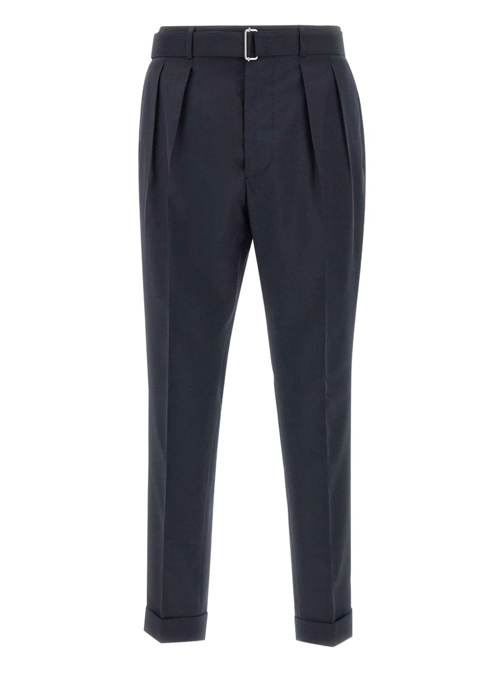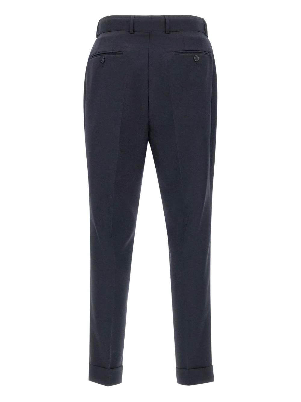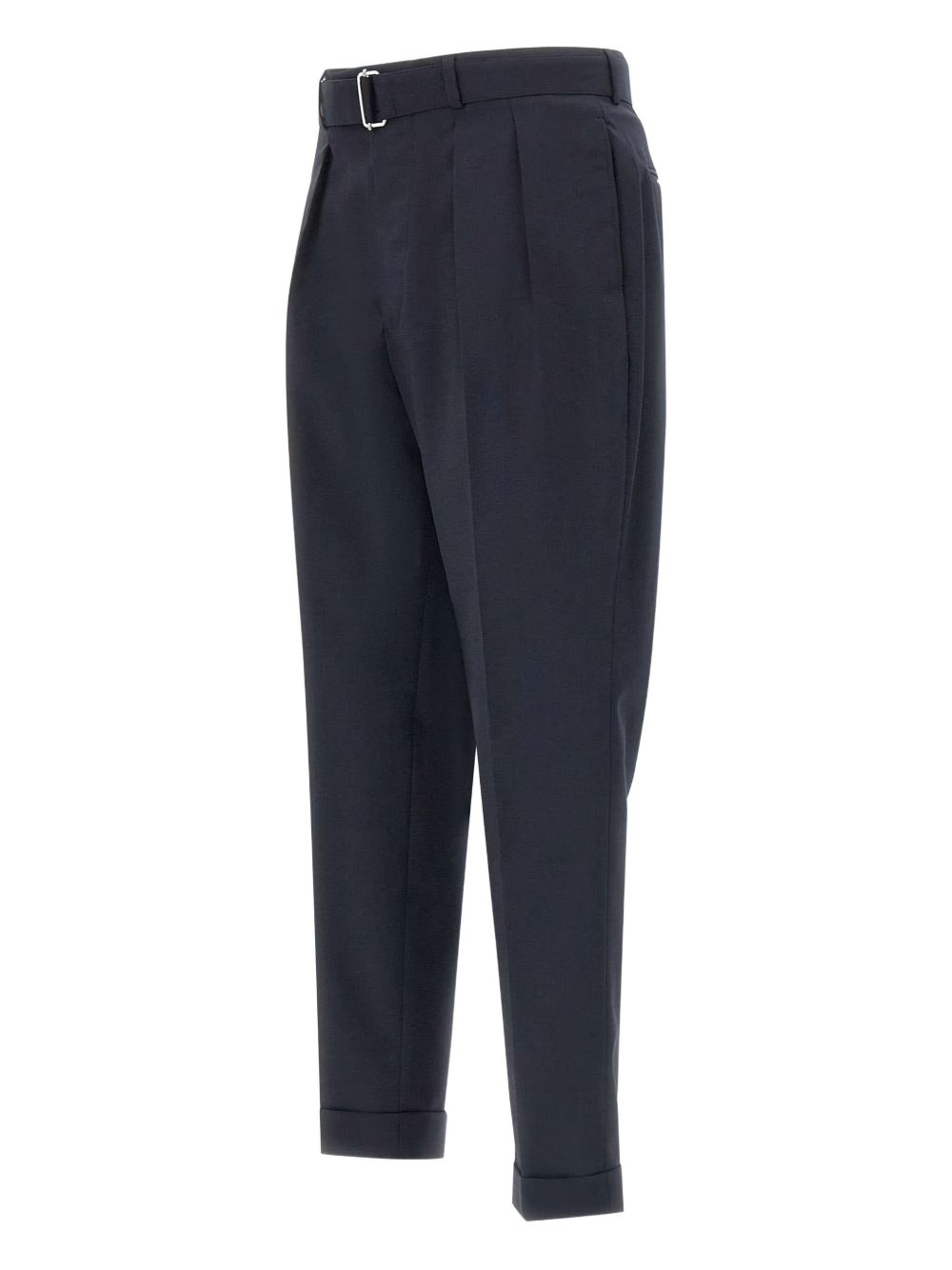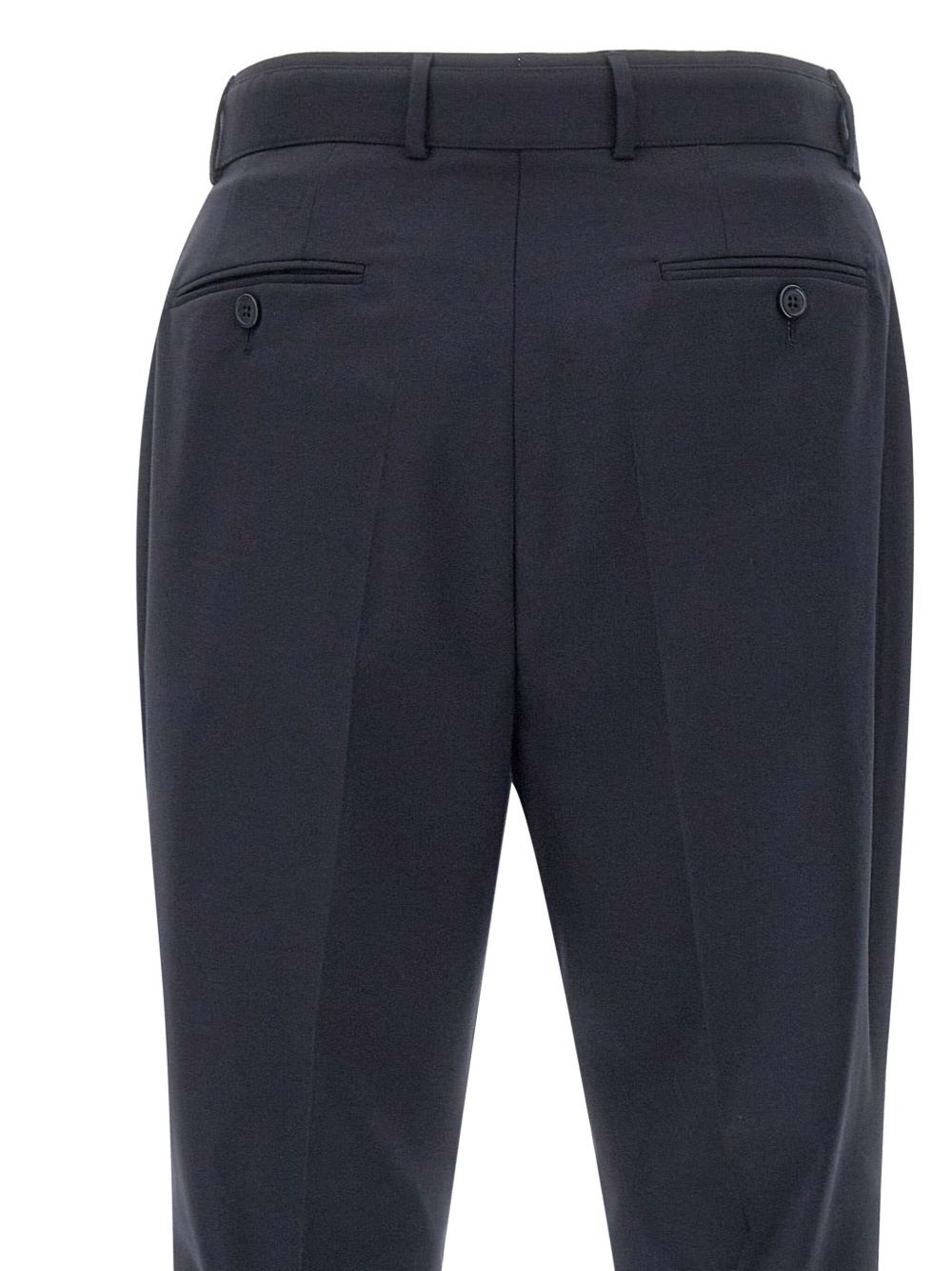 Pantalone fresco lana blu, cintura in vita, risvolto sul fondo