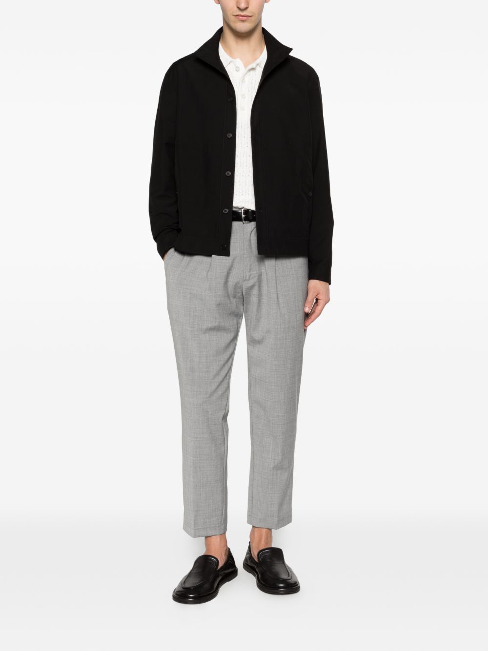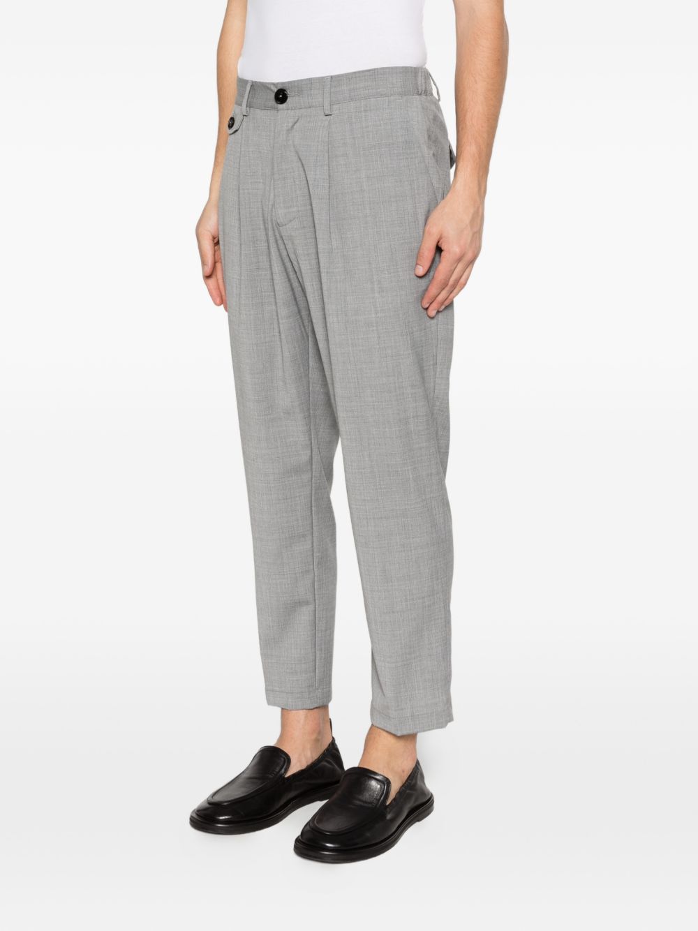 Pantalone in tela lana grigio, taglio dritto, 1 pences, chiusura con bottone