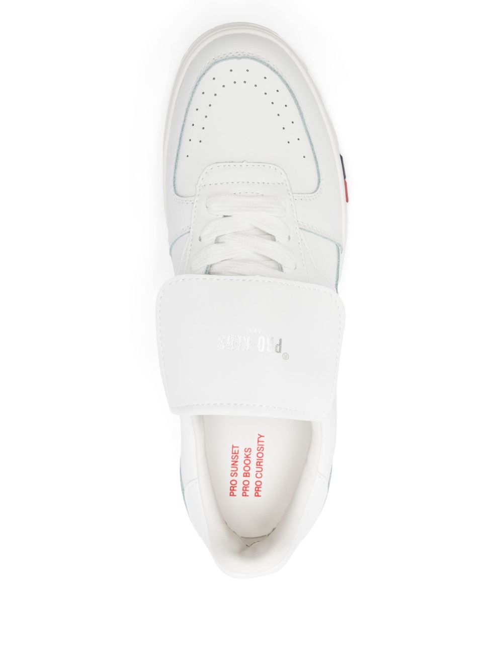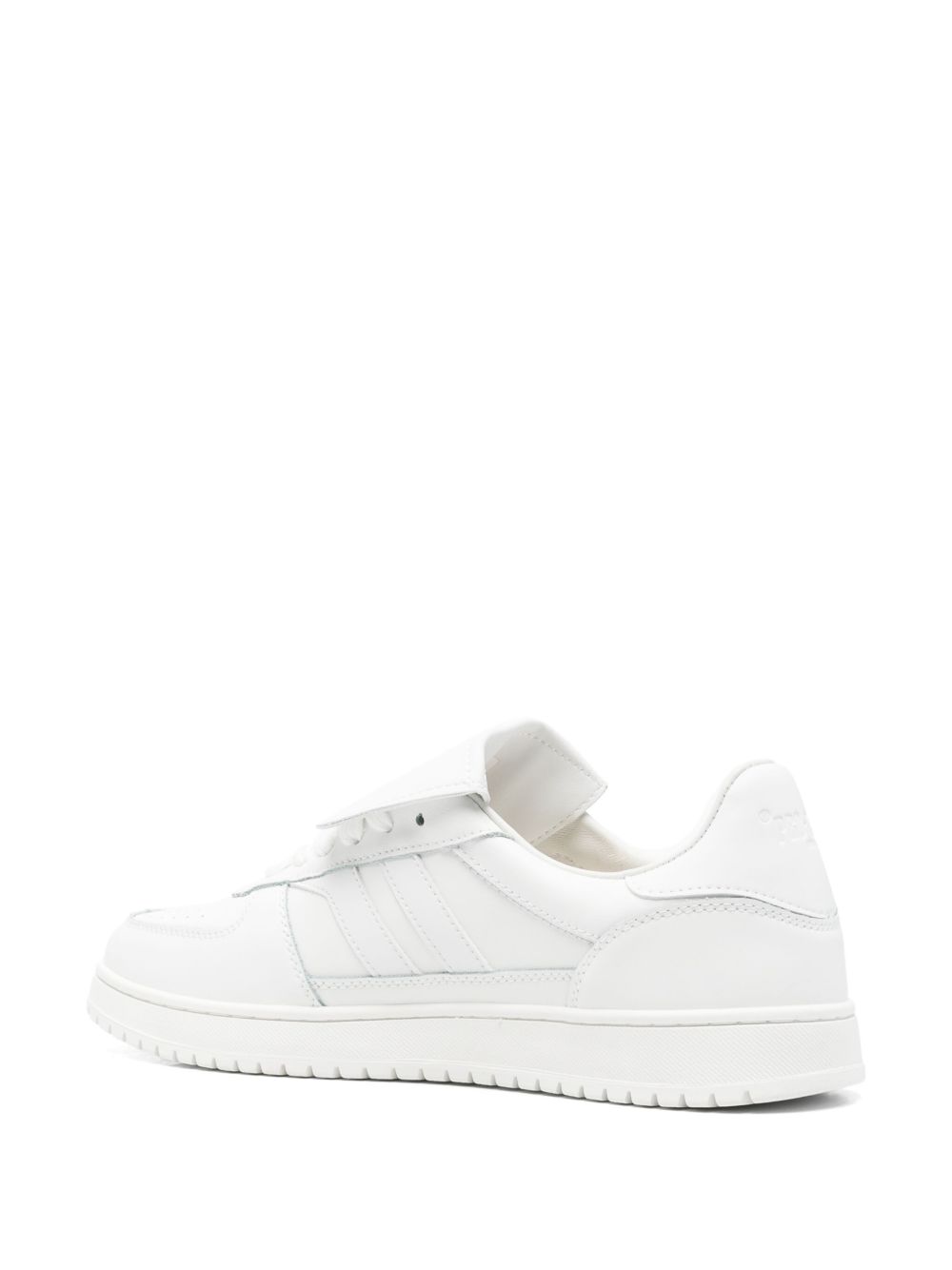 Sneaker in pelle bianca, tomaia in pelle, lacci cerati in cotone, fodera in morbida pelle, suola in gomma, dettagli a contrasto