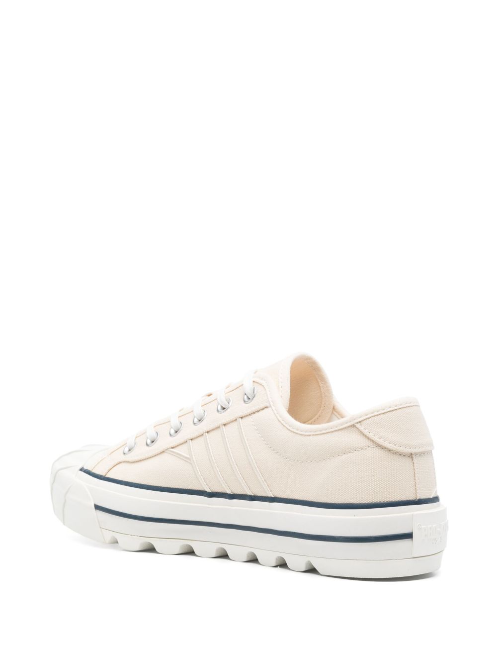 Sneaker vulcanizzata, tomaia in Canvas, lacci cerati in cotone, fodera in morbida pelle, suola con 5 foxing differenti in gomma