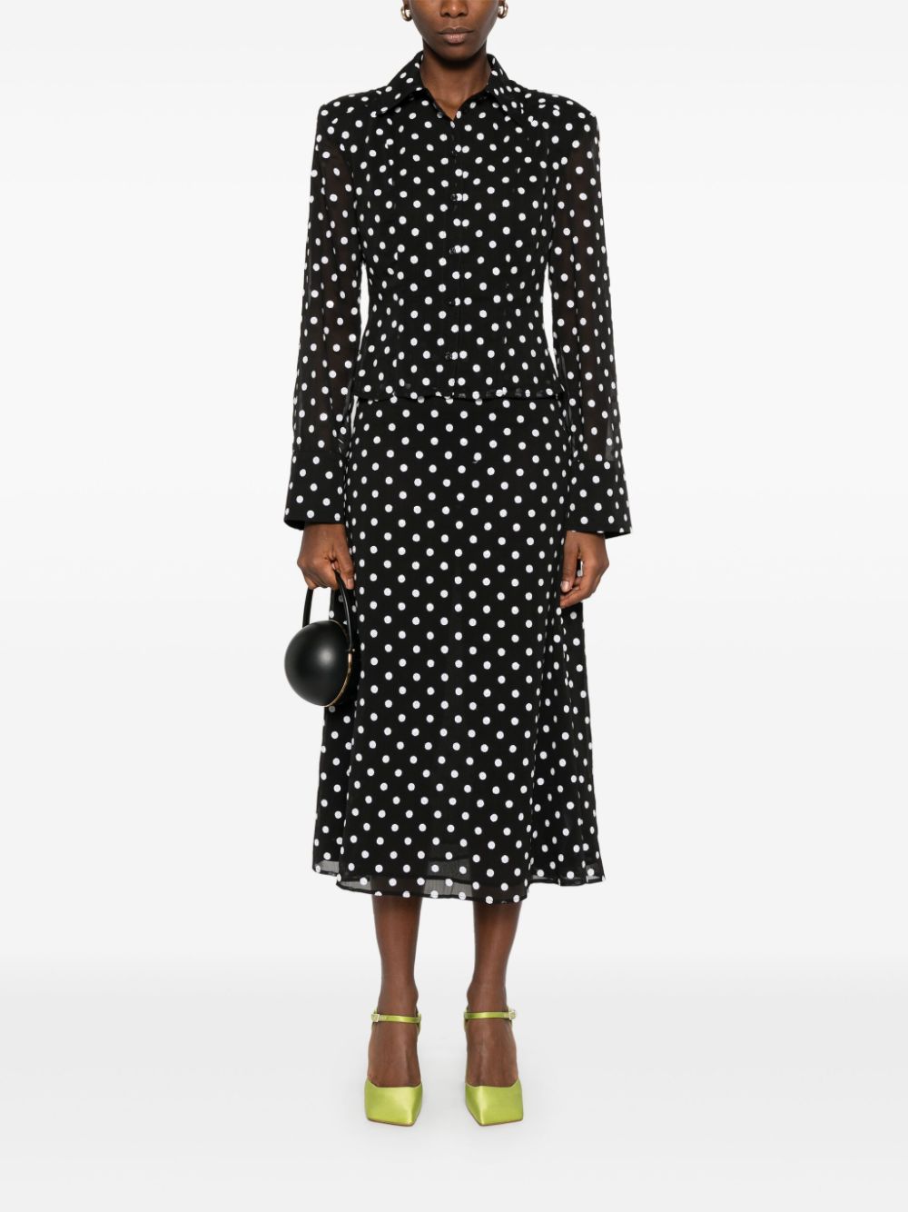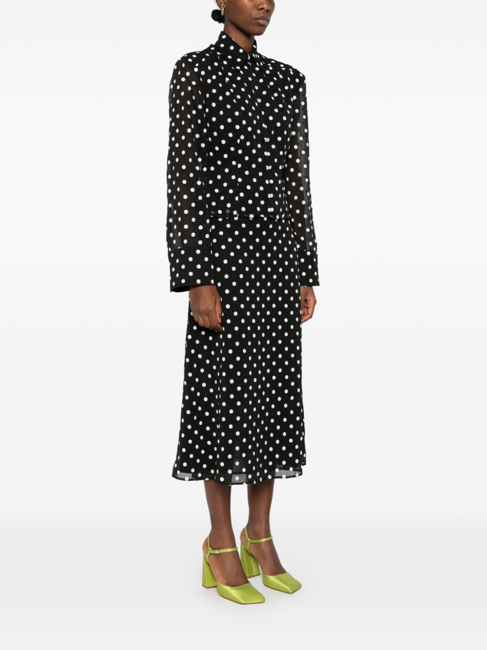 Camicia nera aderente, maniche ampie e spalline staccabili per uno stile versatile. Realizzata in chiffon increspato e ornata da pois di paillettes