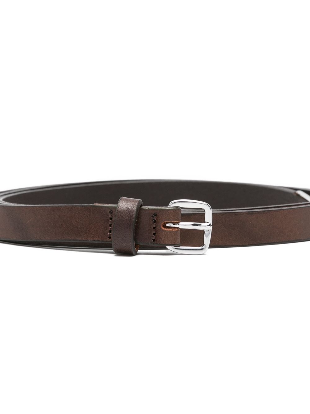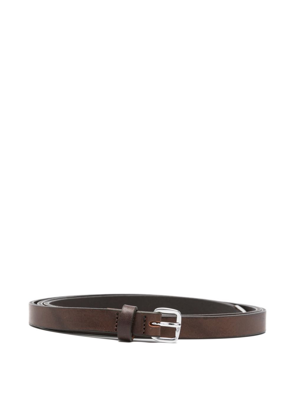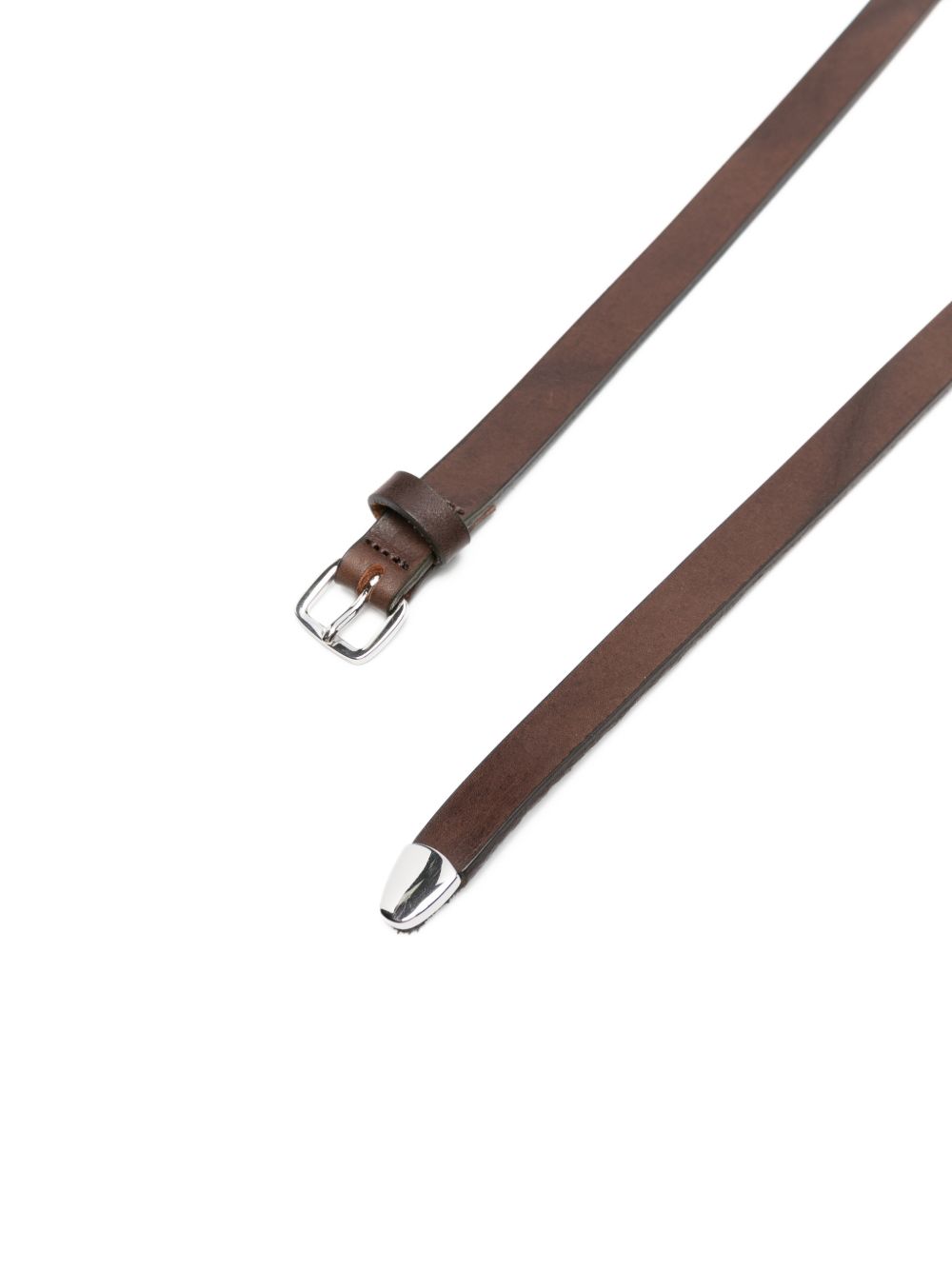 Cintura in pelle marrone, fibbia e puntale in acciaio