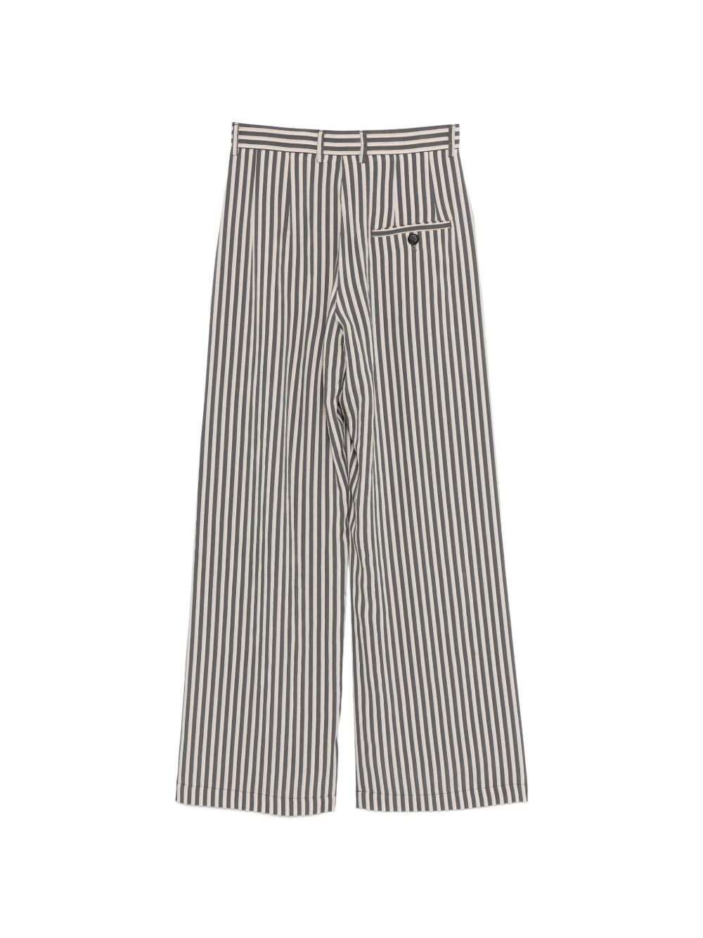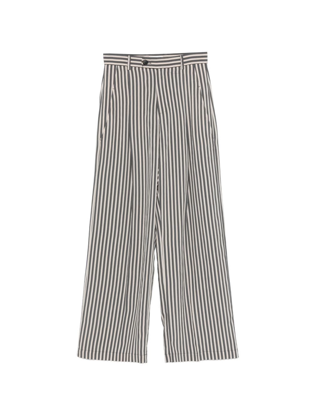 Pantalone viscosa a righe ecru/grigio