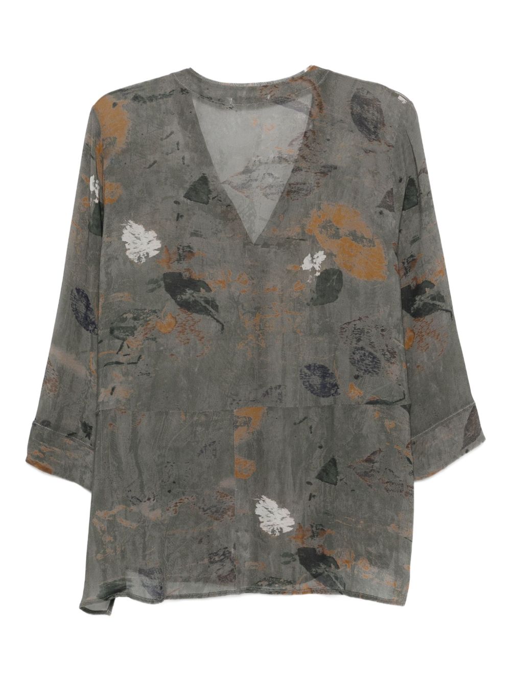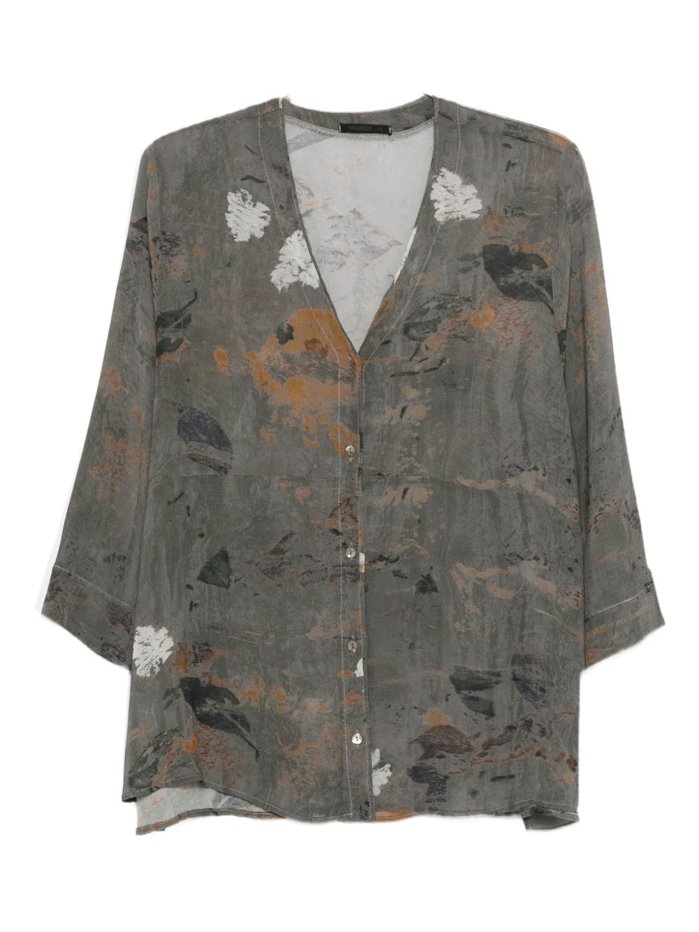 Camicia over in gerogette verde con stampa, scollo a V, maniche a 3/4