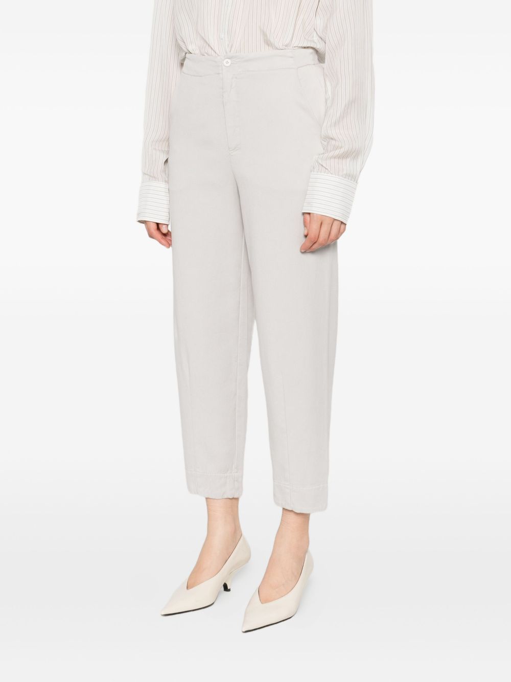 Pantalone largo in lino cotone doppio sabbia chiaro, tasca obliqua, chiusura con bottone, retro elasticizzato