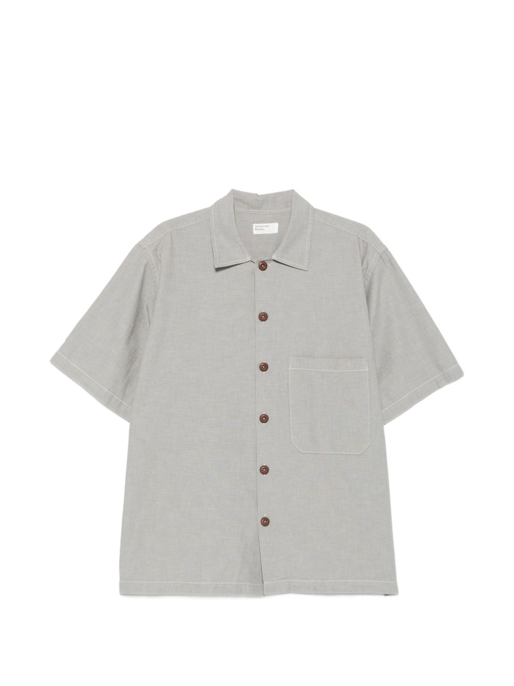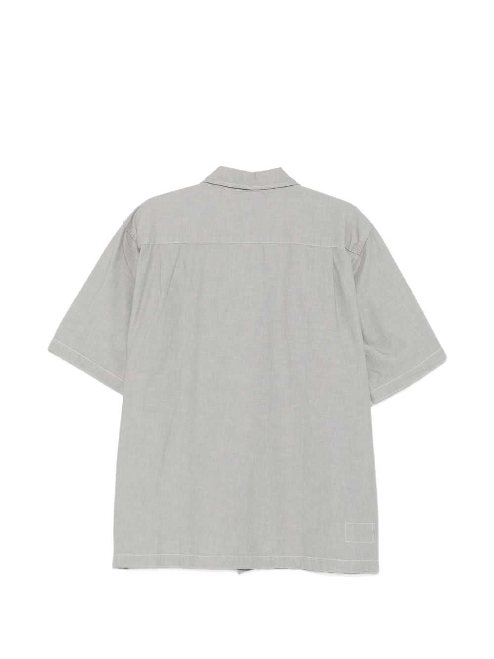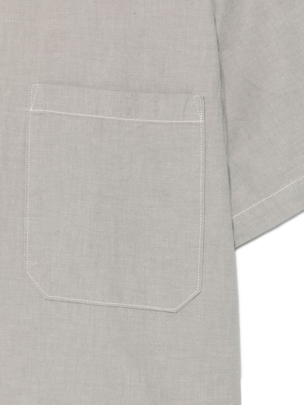 Camicia in cotone canvas grigio chiaro, modello boxi, collo piatto, impunture a contrasto
