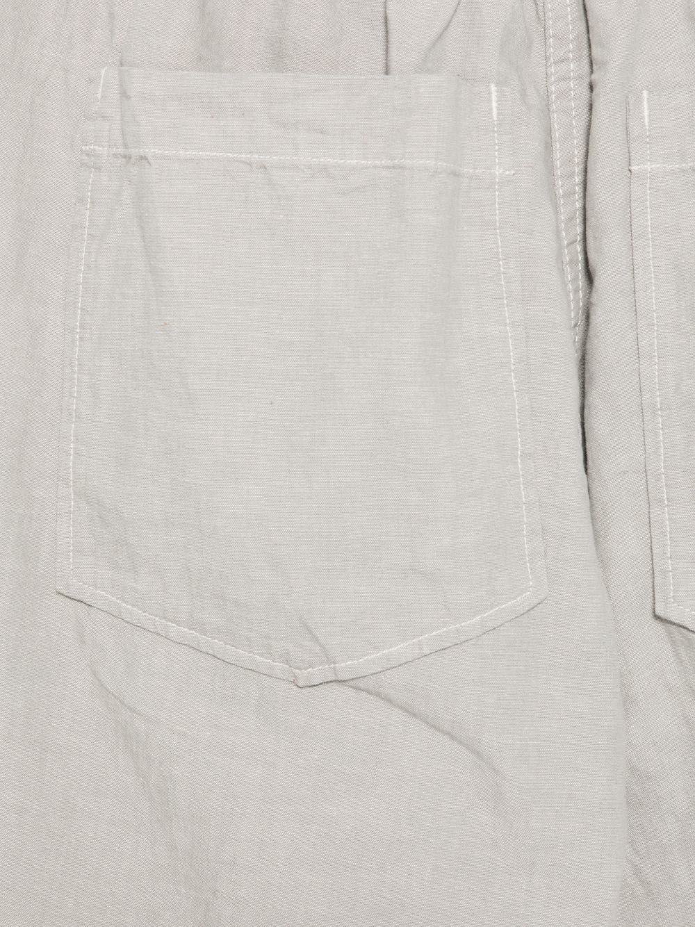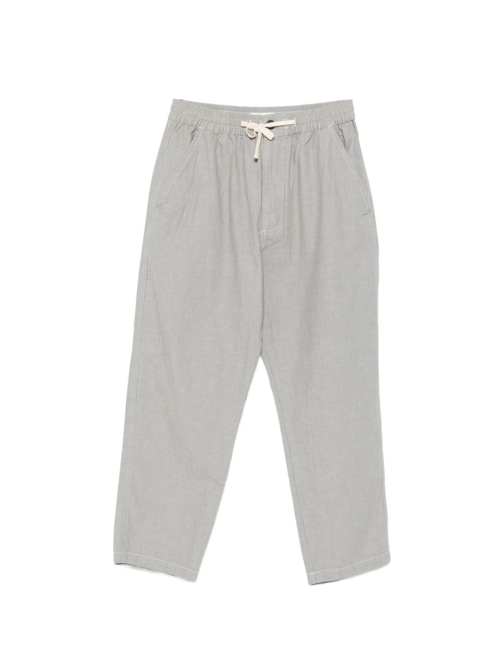 Pantalone in cotone canvas grigio chiaro, tasca obliqua, elastico in vita con coulisse, cavallo sceso