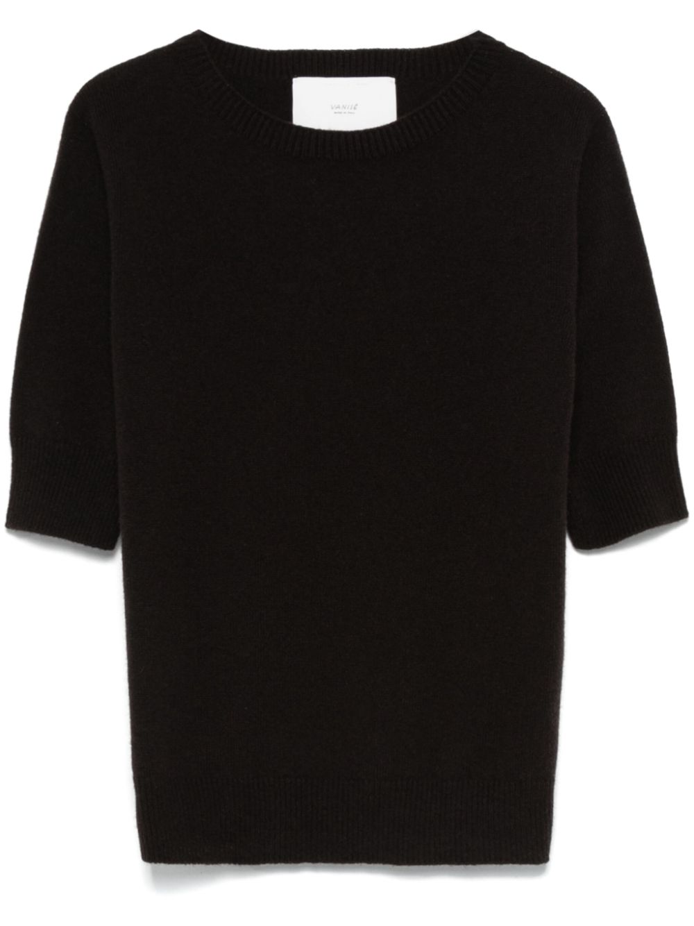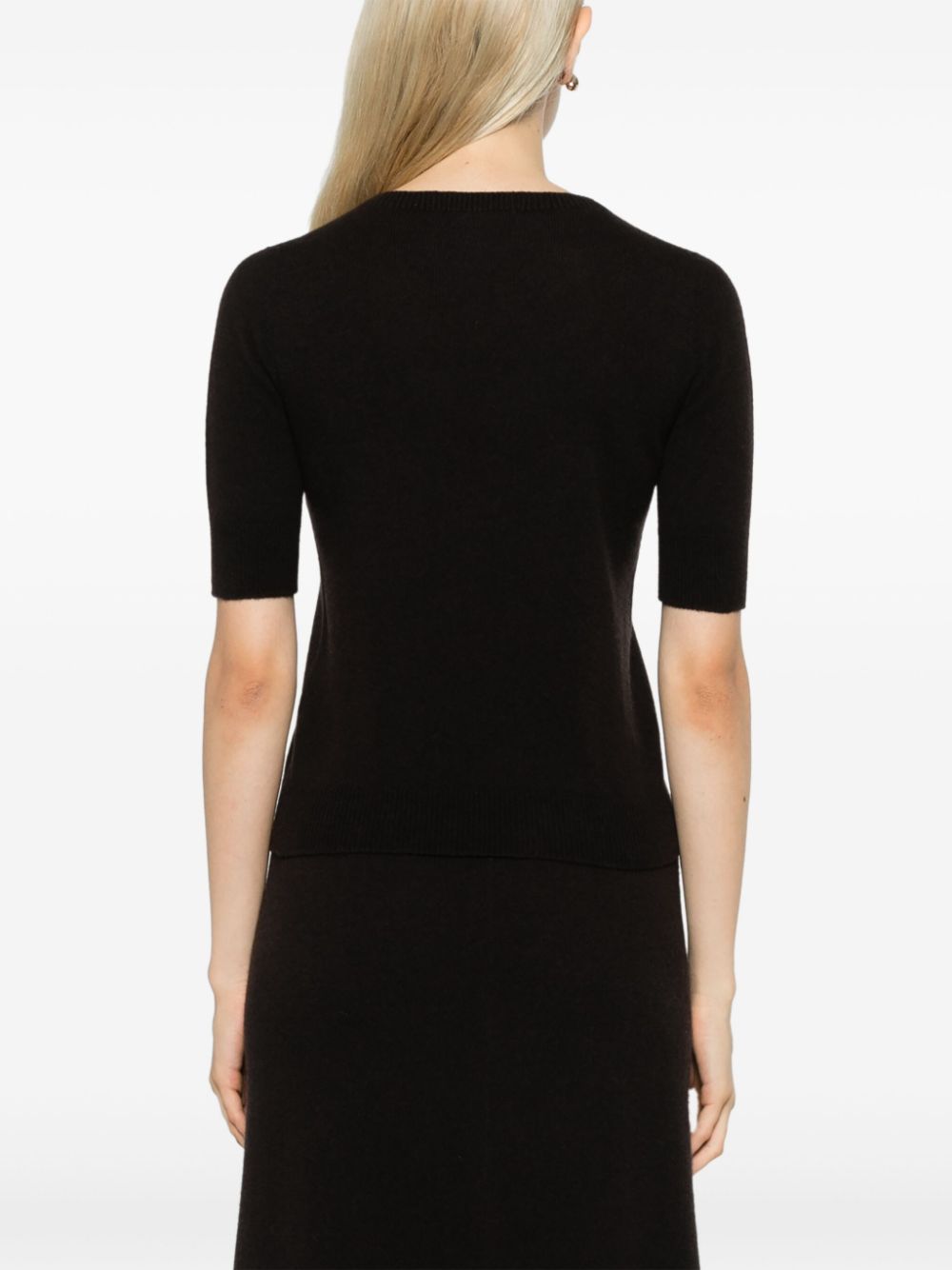 Maglione testa di moro in cashmere a coste, spazzolato, girocollo, maniche corte, fondo dritto