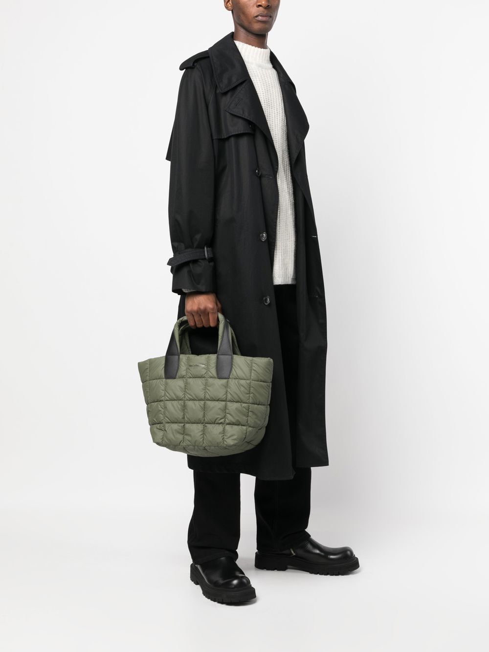 Borsa trapuntata verde militare in nylon, trapuntato a rombi, due manici, tracolla, zip superiore